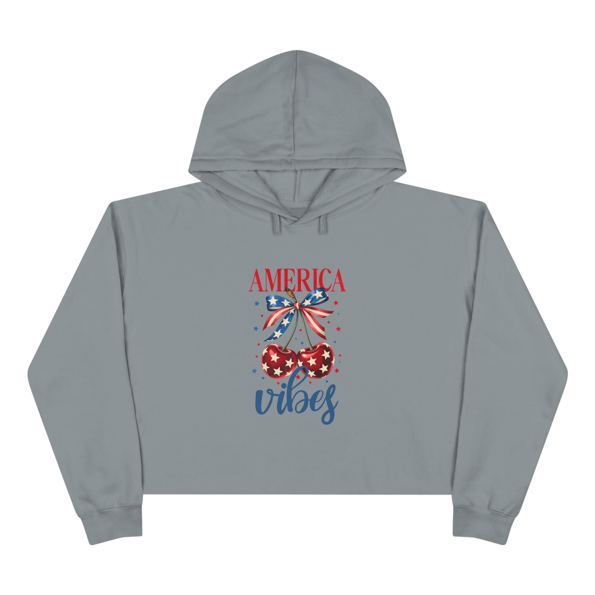 Stay cute and cozy while celebrating patriotic style with this America Vibes Crop Hoodie. Designed for those who love red, white, and blue with a coquette twist, it’s the perfect blend of charm and attitude. Whether you're heading to a summer event or adding flair to your everyday look, this cropped hoodie brings sparkly, festive energy to your wardrobe. Pair it with denim or skirts for an effortlessly playful outfit that turns patriotic fashion into a statement.