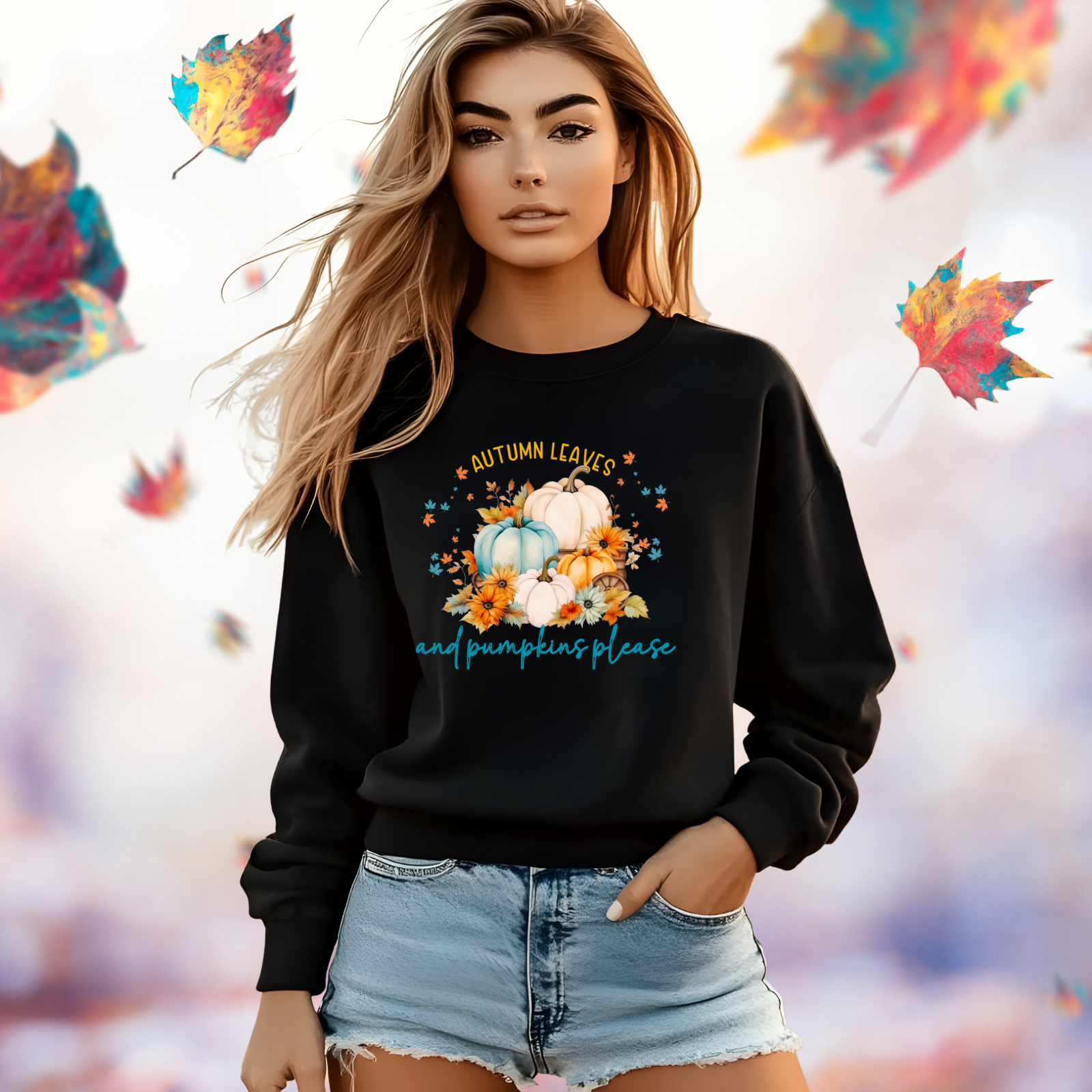 Wrap yourself in fall comfort with the Autumn Leaves and Pumpkins Please Crewneck Sweatshirt, the ultimate addition to your autumn wardrobe. Its cozy feel and classic style make it perfect for chilly mornings, pumpkin patch photos, and festive gatherings. This fall crewneck delivers the ideal mix of warmth and seasonal charm, offering an easy way to elevate your fall outfits while celebrating pumpkins, leaves, and all things autumn.