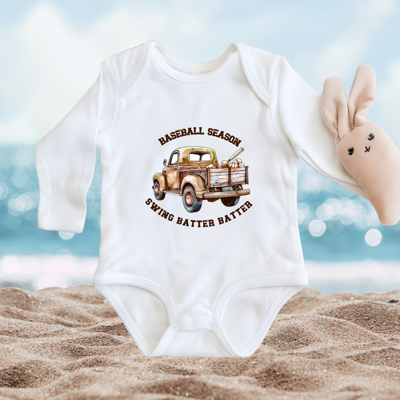 Gear up your little one for game days with the Baseball Season Infant Long Sleeve Onesie, the perfect blend of sporty style and all-day comfort. Made with soft, breathable fabric, this baseball baby outfit keeps your infant cozy while showing off their love for America’s favorite pastime. Ideal for family outings, photos, or everyday wear, this long sleeve onesie adds charm to every occasion. A must-have baseball-themed baby essential that makes cheering on the team even sweeter.