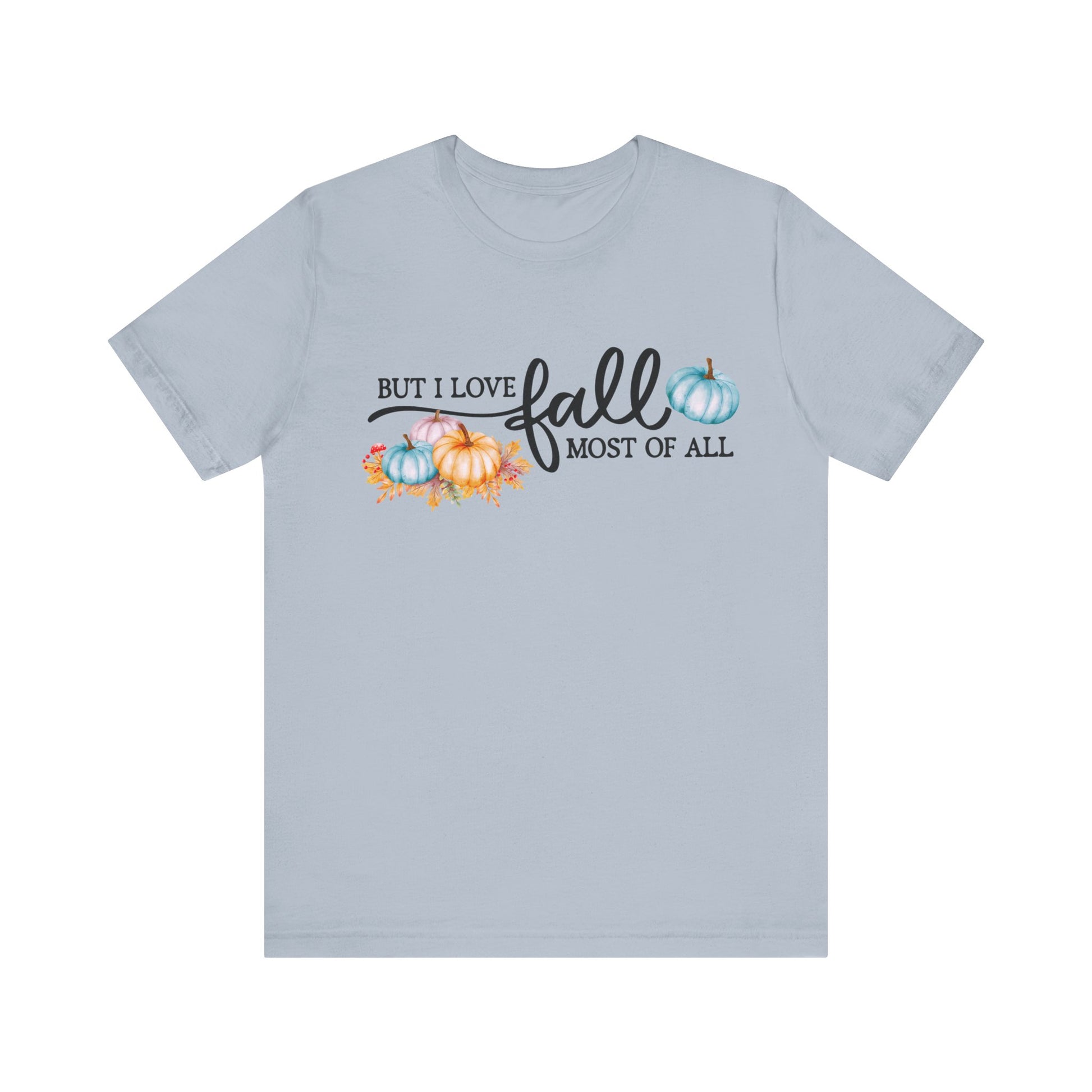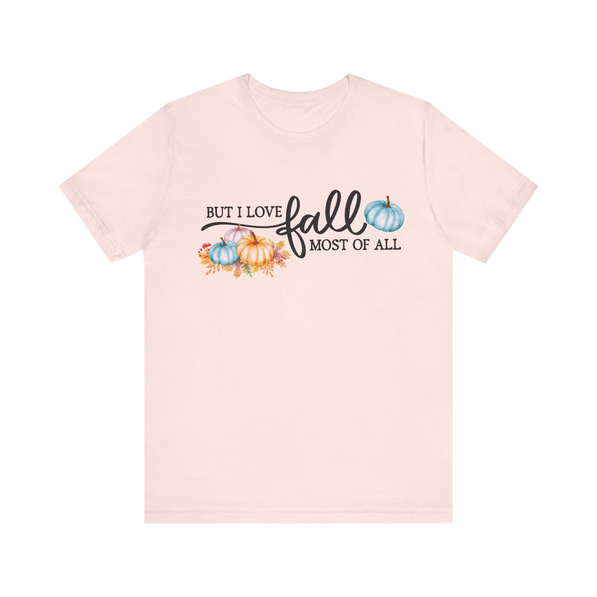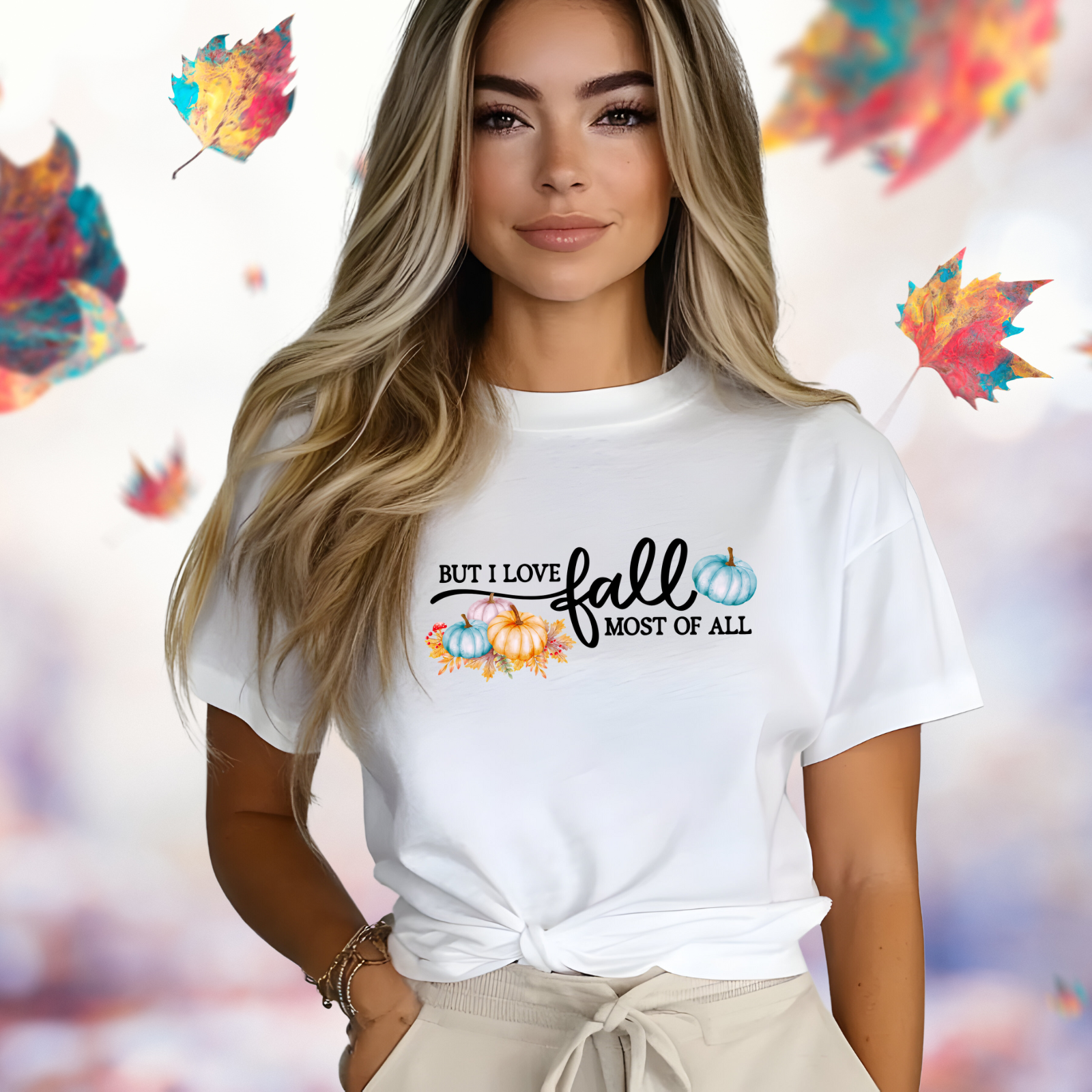Step into autumn style with the But I Love Fall Most of All T-Shirt, a seasonal favorite that captures the cozy charm of fall. Perfect for casual days, this fall graphic tee pairs effortlessly with jeans, cardigans, or flannels for a relaxed yet stylish look. Whether you’re heading to a pumpkin patch, sipping cider, or enjoying a crisp fall afternoon, this tee is the perfect way to showcase your love for autumn fashion and seasonal vibes.