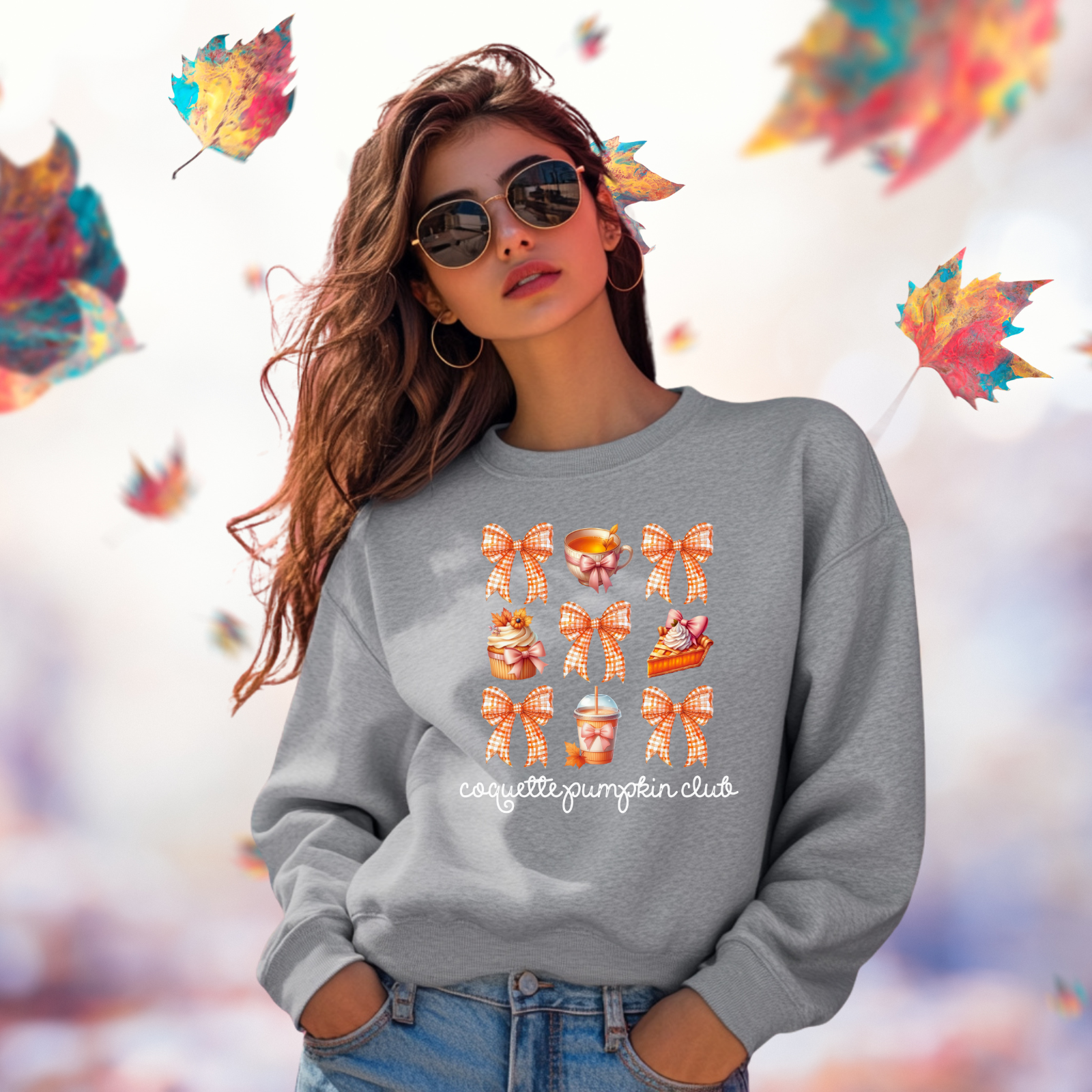 Celebrate cozy season in style with our Coquette Pumpkin Club Crewneck Sweatshirt, the perfect mix of comfort and feminine fall charm. Soft, warm, and effortlessly cute, this sweatshirt is ideal for pumpkin spice lovers, coffee runs, and crisp fall mornings. With its cozy fit and chic aesthetic, it’s a must-have for anyone who adores autumn fashion, cozy layers, and all the lovely seasonal moments that make fall feel truly magical.