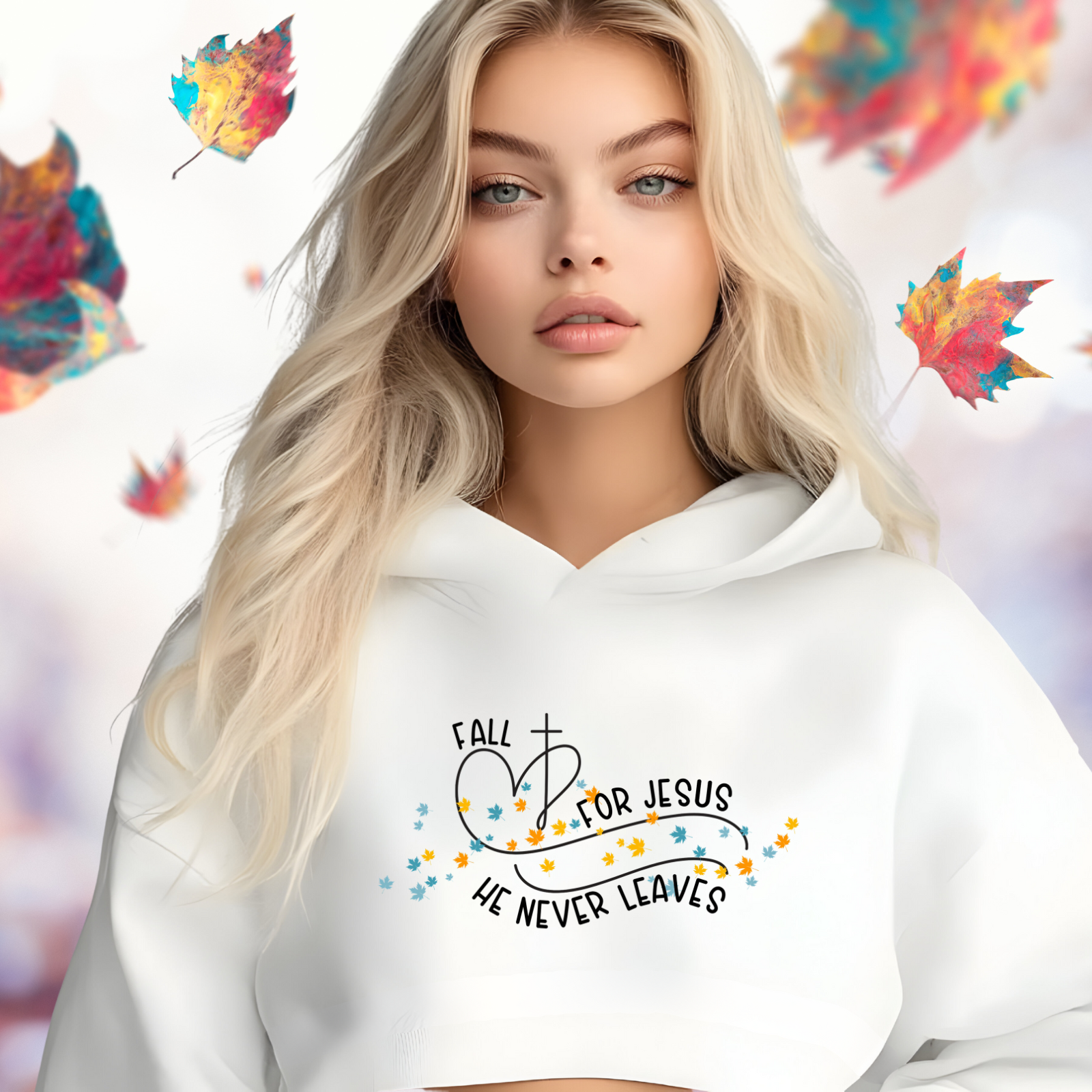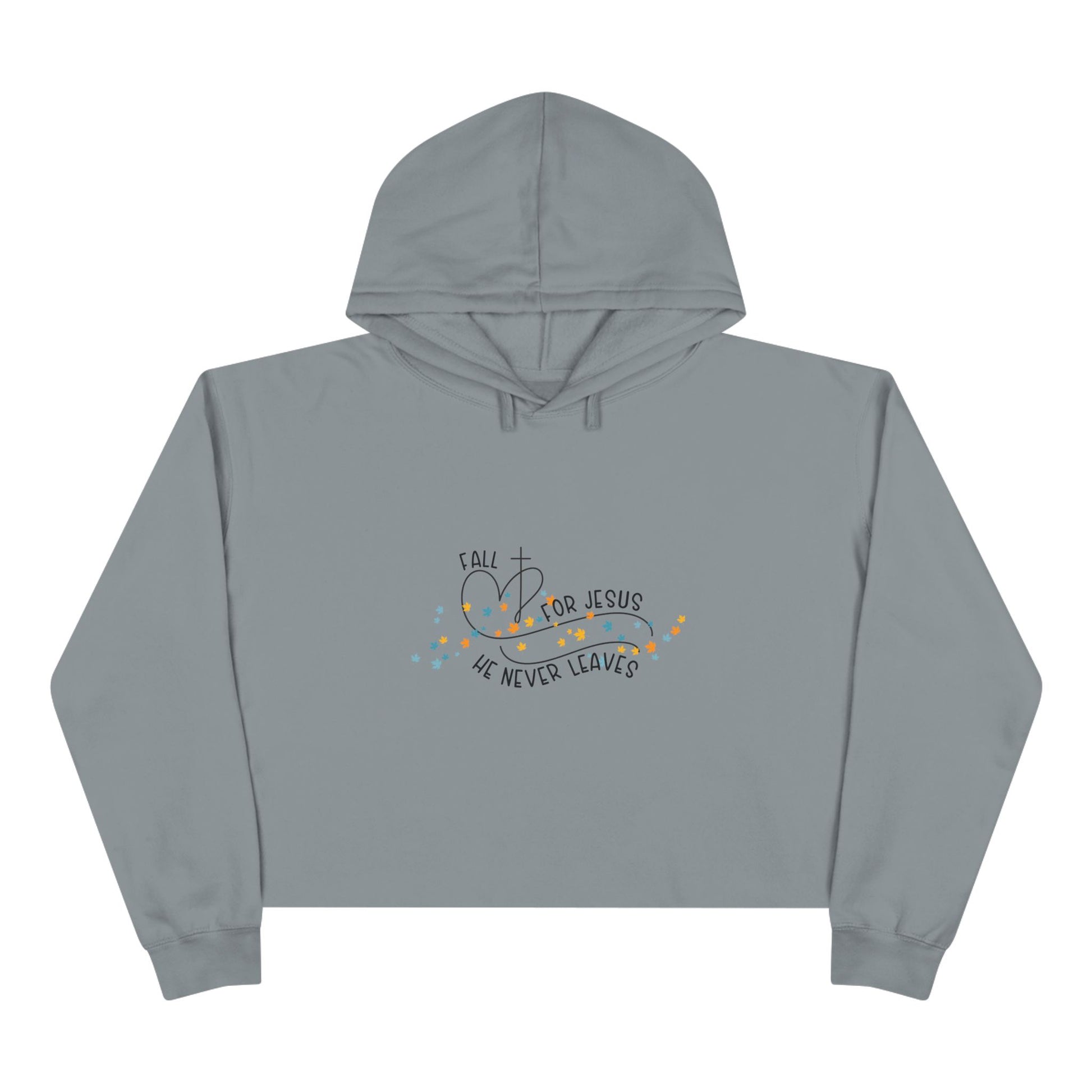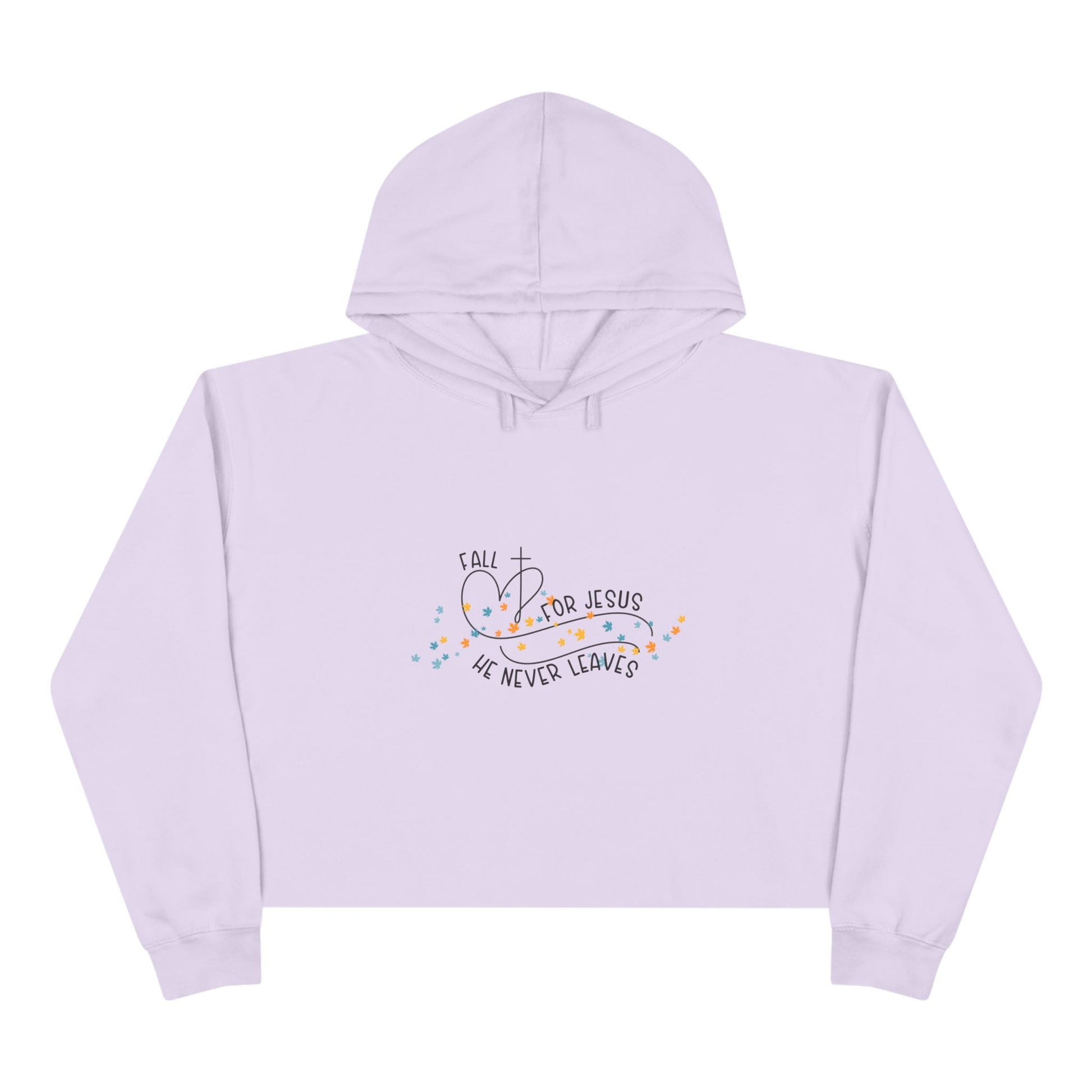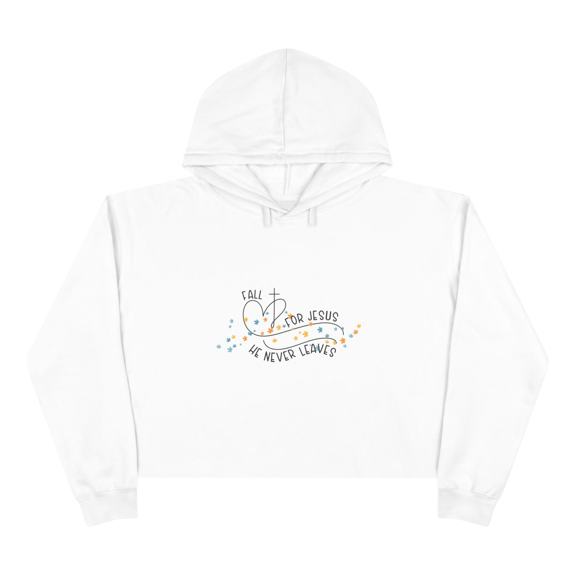 Fall for Jesus, He Never Leaves Crop Hoodie