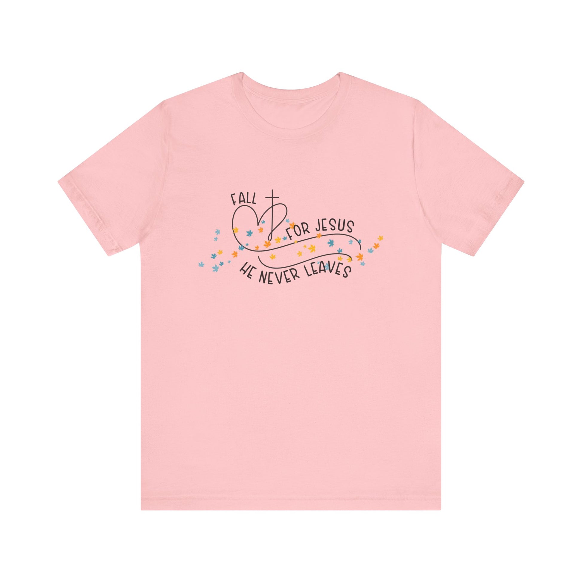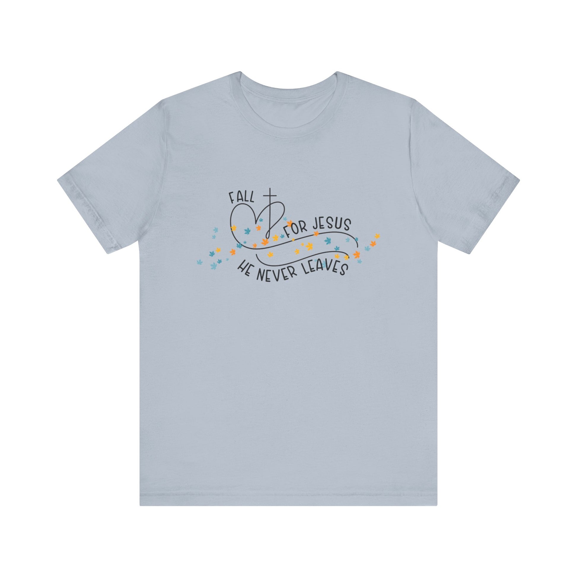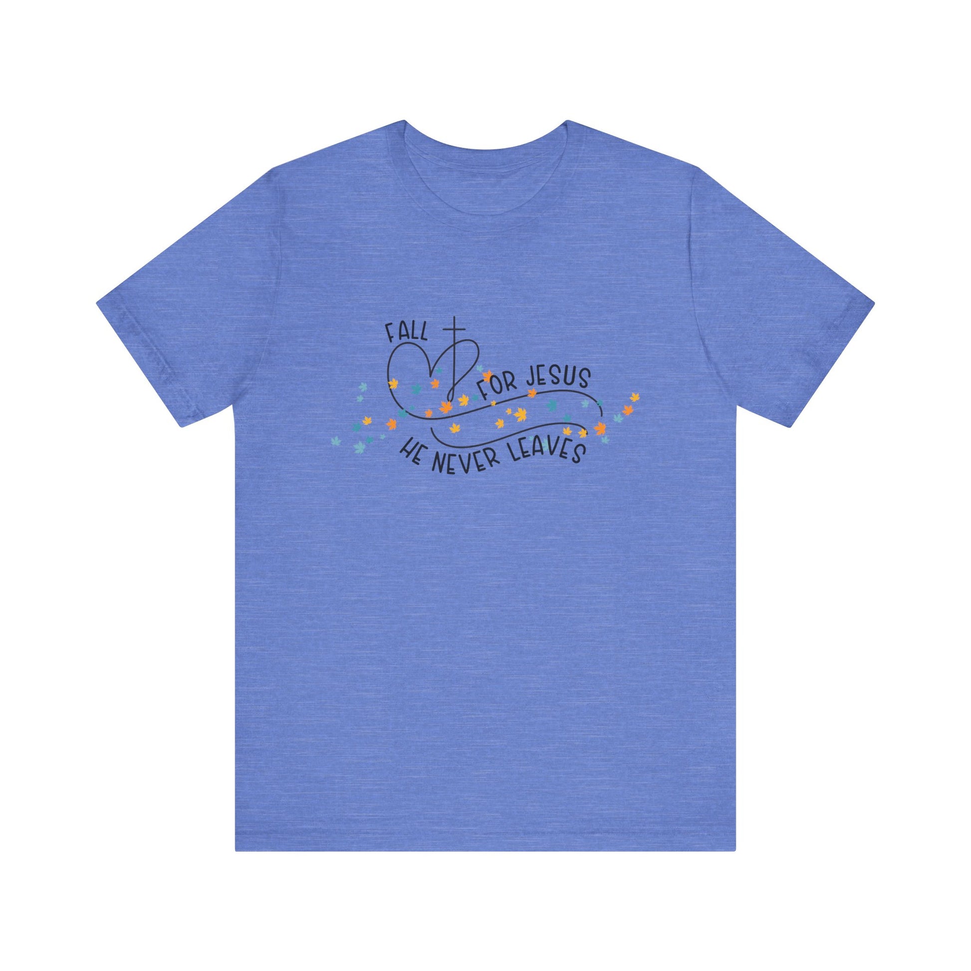 Show your faith and love for the season with our Fall for Jesus, He Never Leaves T-Shirt. Perfect for autumn gatherings or casual days out, this fall tee combines comfort, style, and a heartfelt message. Its soft fabric and flattering fit make it ideal for layering under cozy cardigans or wearing on its own. Celebrate gratitude, faith, and the beauty of fall with a shirt that shares your love for Jesus and autumn blessings.