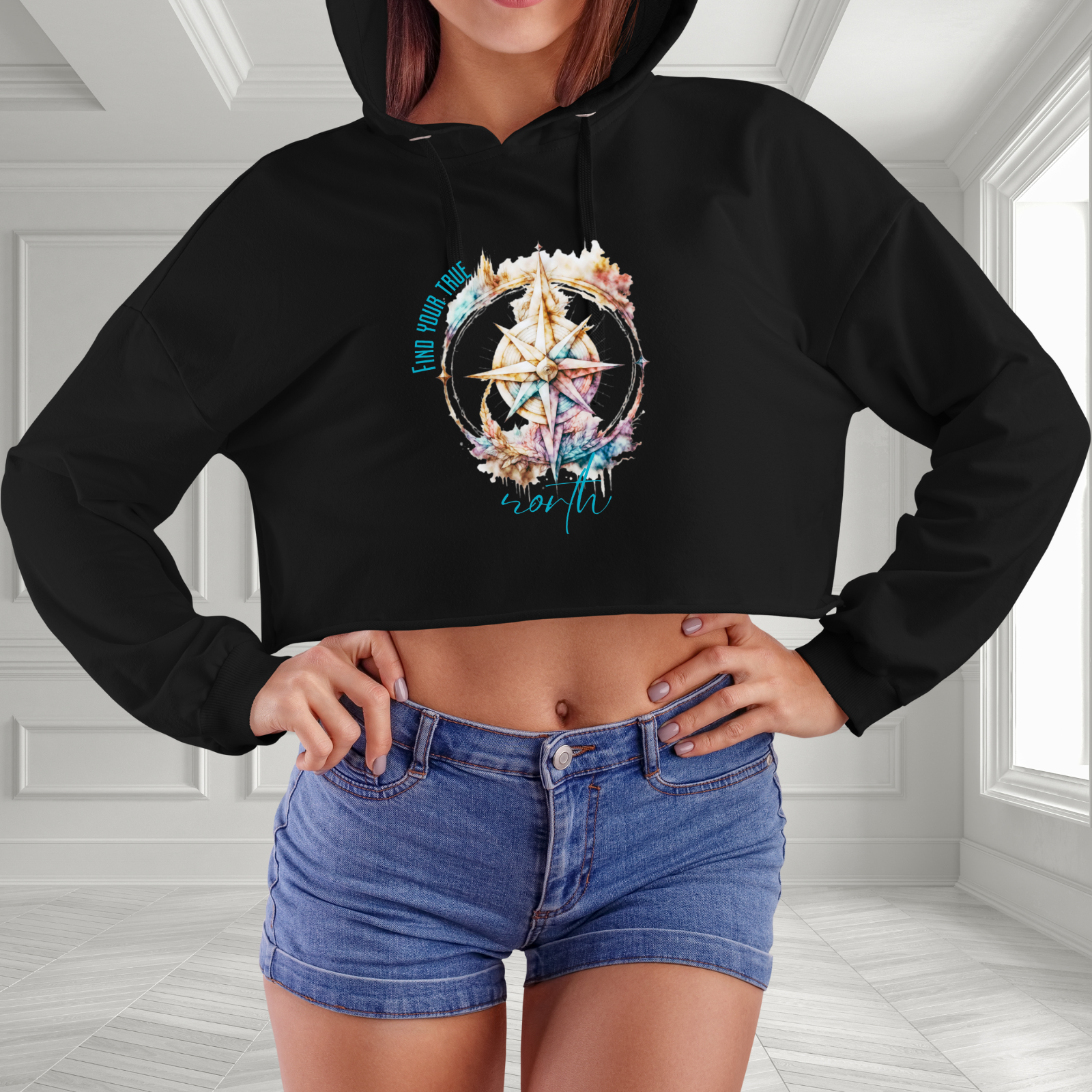 Stay on course in style with the Find Your True North Crop Hoodie. Made from soft, high-quality fabric, this trendy crop design delivers comfort and motivation. Perfect for layering during cool mornings or adding a unique touch to your casual outfit, it's an ideal choice for those charting their own path. Elevate your streetwear game while embracing individuality. This chic hoodie offers a mix of fashion and purpose, making it a must-have addition to your wardrobe.