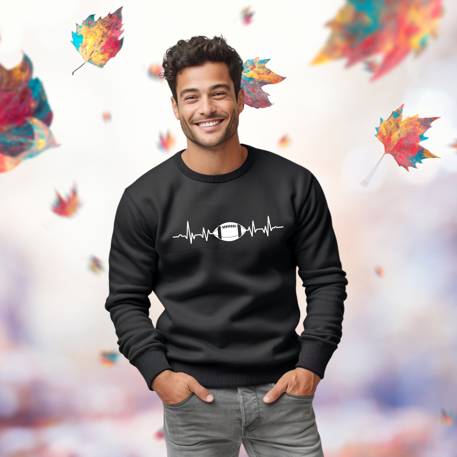 Feel the pulse of every game with the Football Heartbeat Crewneck Sweatshirt, the perfect blend of comfort and team spirit. This cozy football sweatshirt keeps you warm on crisp game days while adding a stylish touch to your fall wardrobe. Its relaxed fit makes it ideal for tailgates, casual weekends, or cheering from home. Add this must-have football crewneck to your game day apparel collection and enjoy unbeatable comfort all season long.