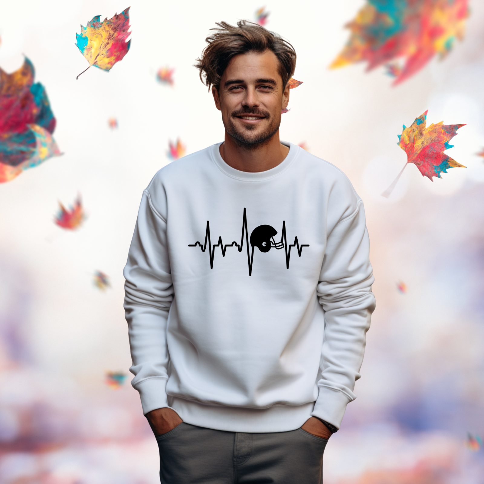 Football Helmet Heartbeat Crewneck Sweatshirt