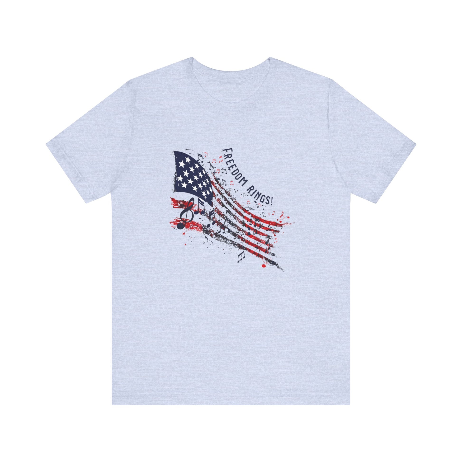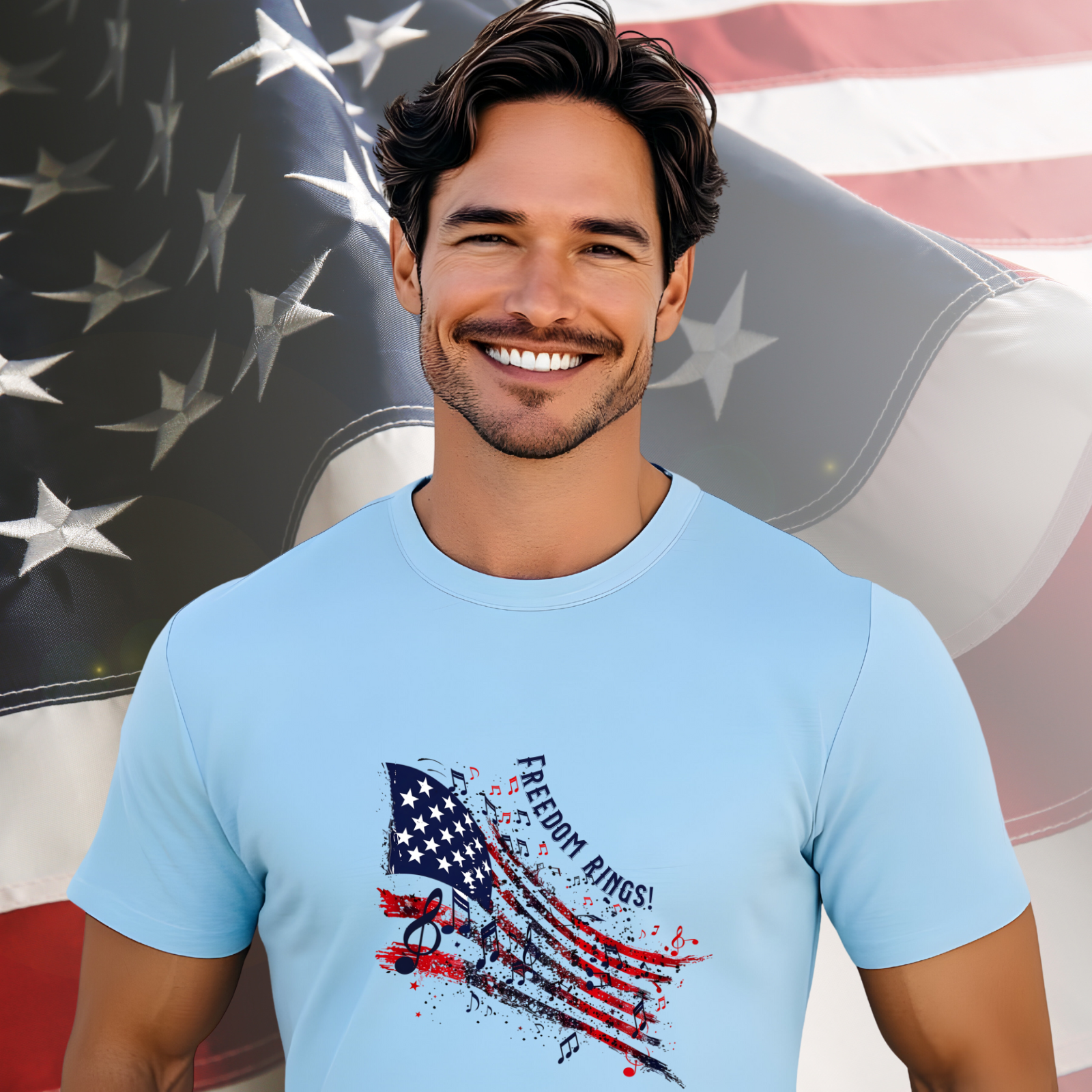 Celebrate freedom and style with this Freedom Rings T-Shirt, made for those who wear their American pride loud and proud. Perfect for barbeques, summer festivals, or everyday patriotic flair, this tee delivers comfort and all-American energy in one easy look. Featuring a nod to musical freedom and national pride, it’s a must-have for spirited souls who value liberty, tradition, and great vibes. Show your USA love with a patriotic shirt that’s bold, expressive, and effortlessly cool.