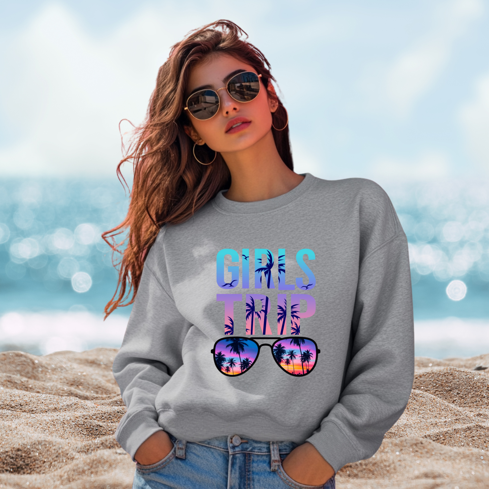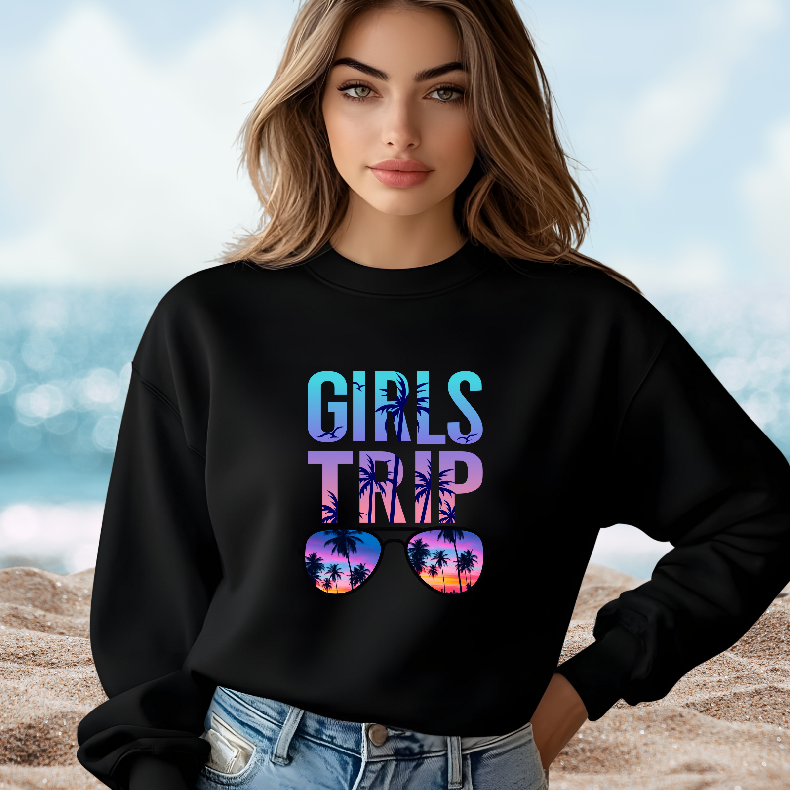 Get ready for unforgettable memories with this Girls Trip Crewneck Sweatshirt, designed for comfort and style on every adventure. Perfect for road trips, beach vacations, and cozy evenings with your best friends, this sweatshirt keeps you warm while showcasing your fun, adventurous spirit. Whether you’re planning matching outfits for group photos or just want a stylish reminder of your travels, this sweatshirt is a must-have for celebrating friendship in every season.