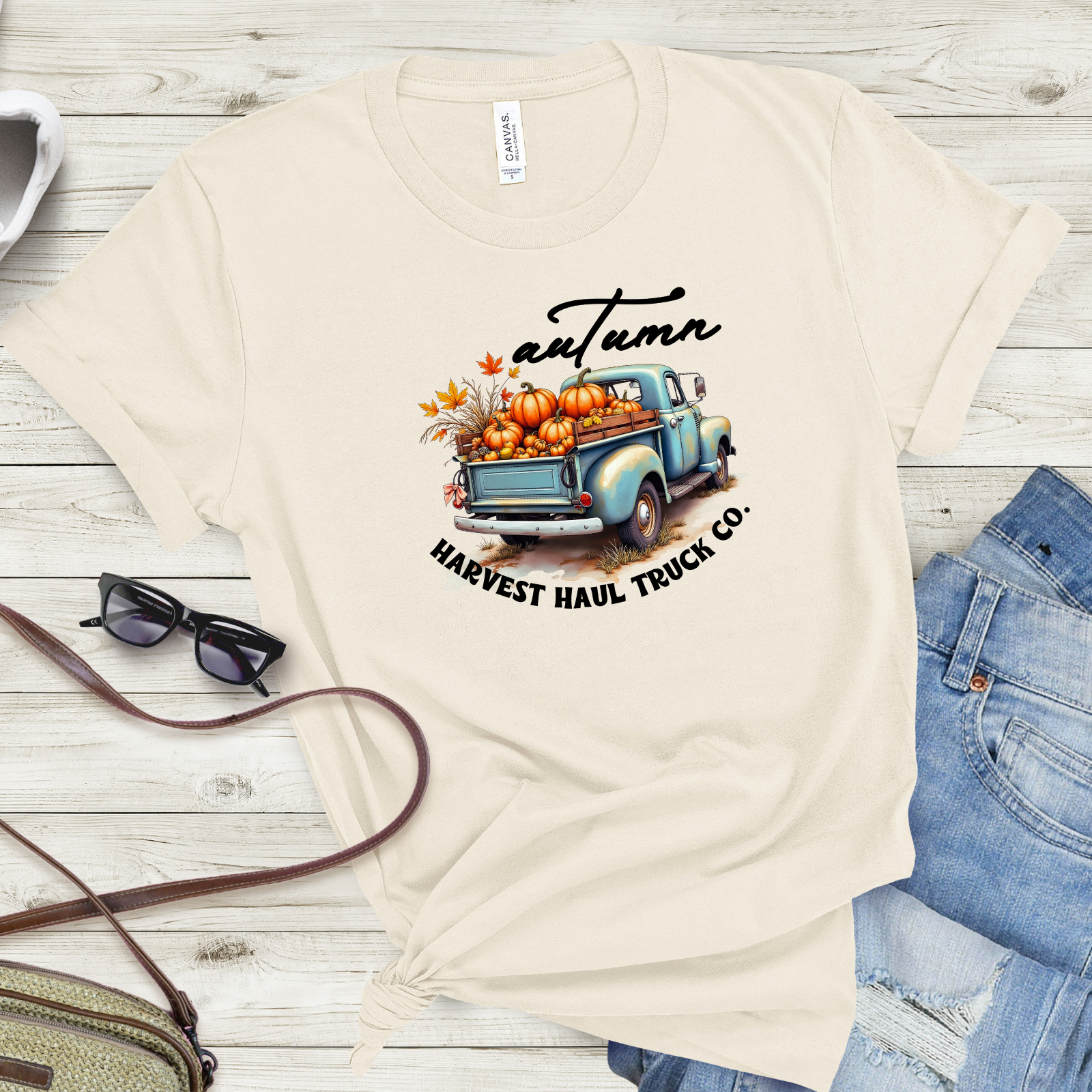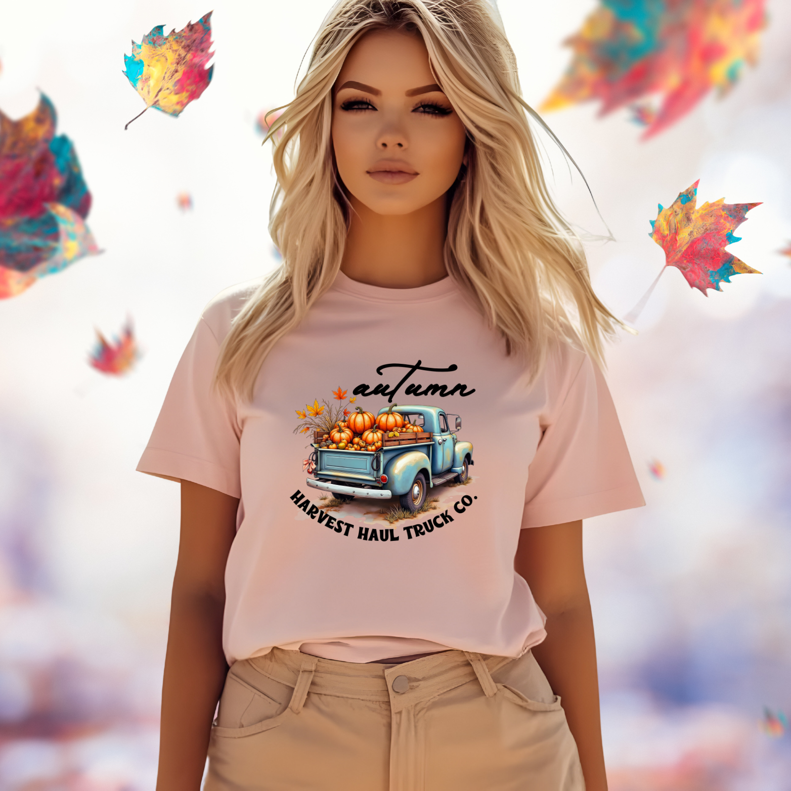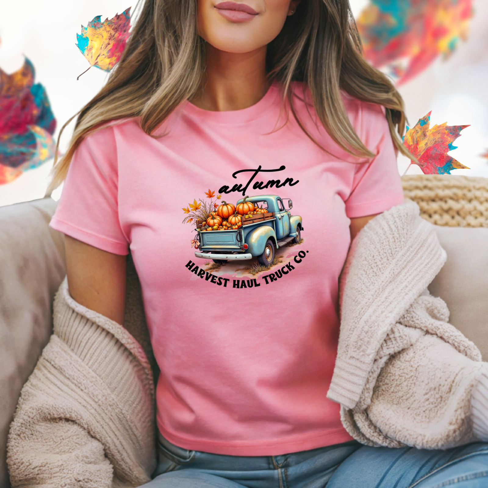 Celebrate fall in style with the Harvest Haul Truck Co. T-Shirt, a cozy and versatile addition to your autumn wardrobe. Perfect for pumpkin patch trips, hayrides, or crisp fall mornings, this soft tee combines comfort with seasonal charm. The flattering fit and vintage-inspired design make it ideal for layering or wearing solo, while the autumn-themed details capture the spirit of harvest season. Show off your love for fall and festive style with this must-have tee.