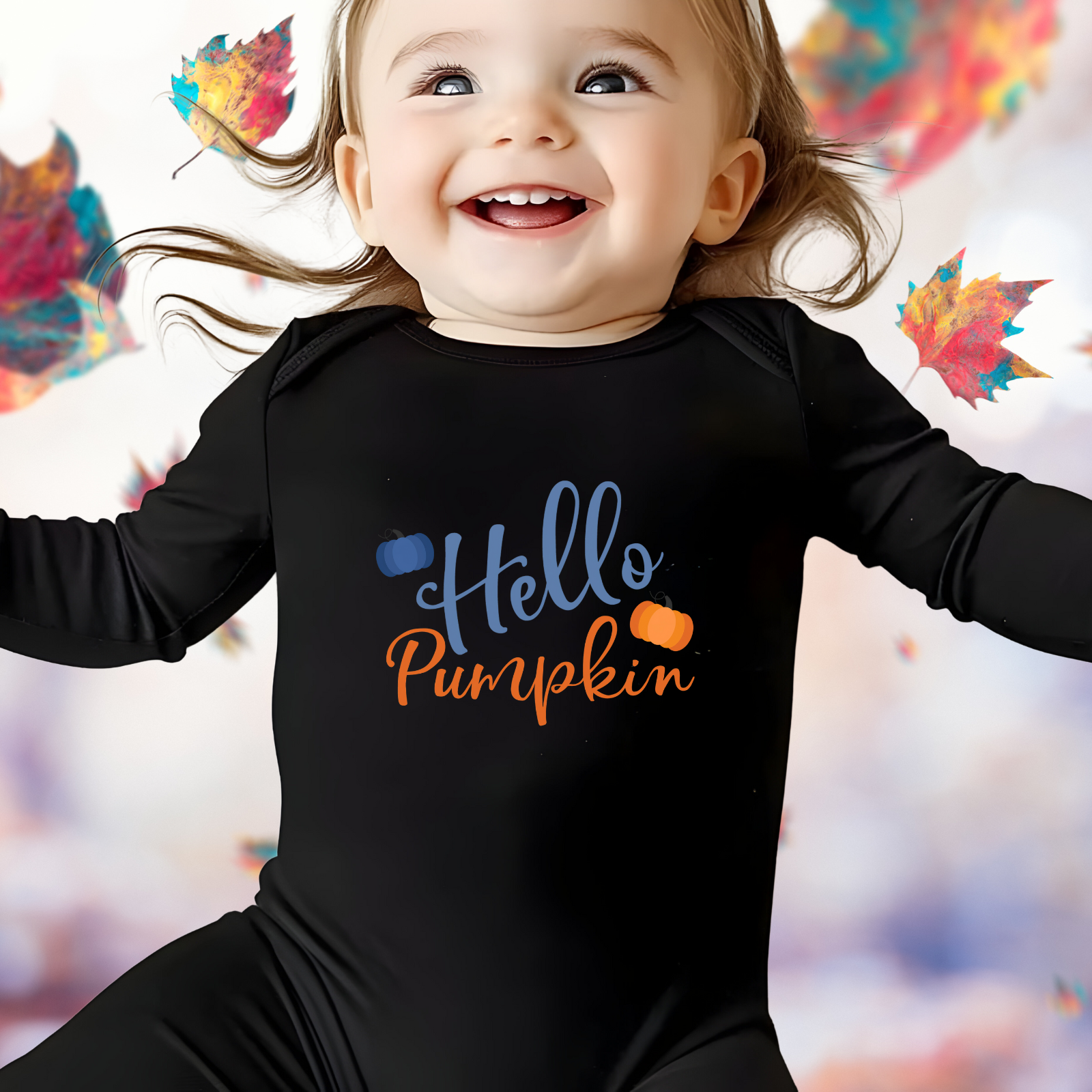 Welcome the sweetness of fall with our Hello Pumpkin Infant Long Sleeve Onesie, the perfect cozy outfit for your little one’s autumn adventures. Made for comfort and cuteness, this soft fall baby bodysuit is ideal for pumpkin patch photos or family gatherings. With its adorable seasonal charm and gentle fit, it’s a must-have addition to any baby’s fall wardrobe. Celebrate cozy moments and pumpkin spice season with this precious autumn essential.