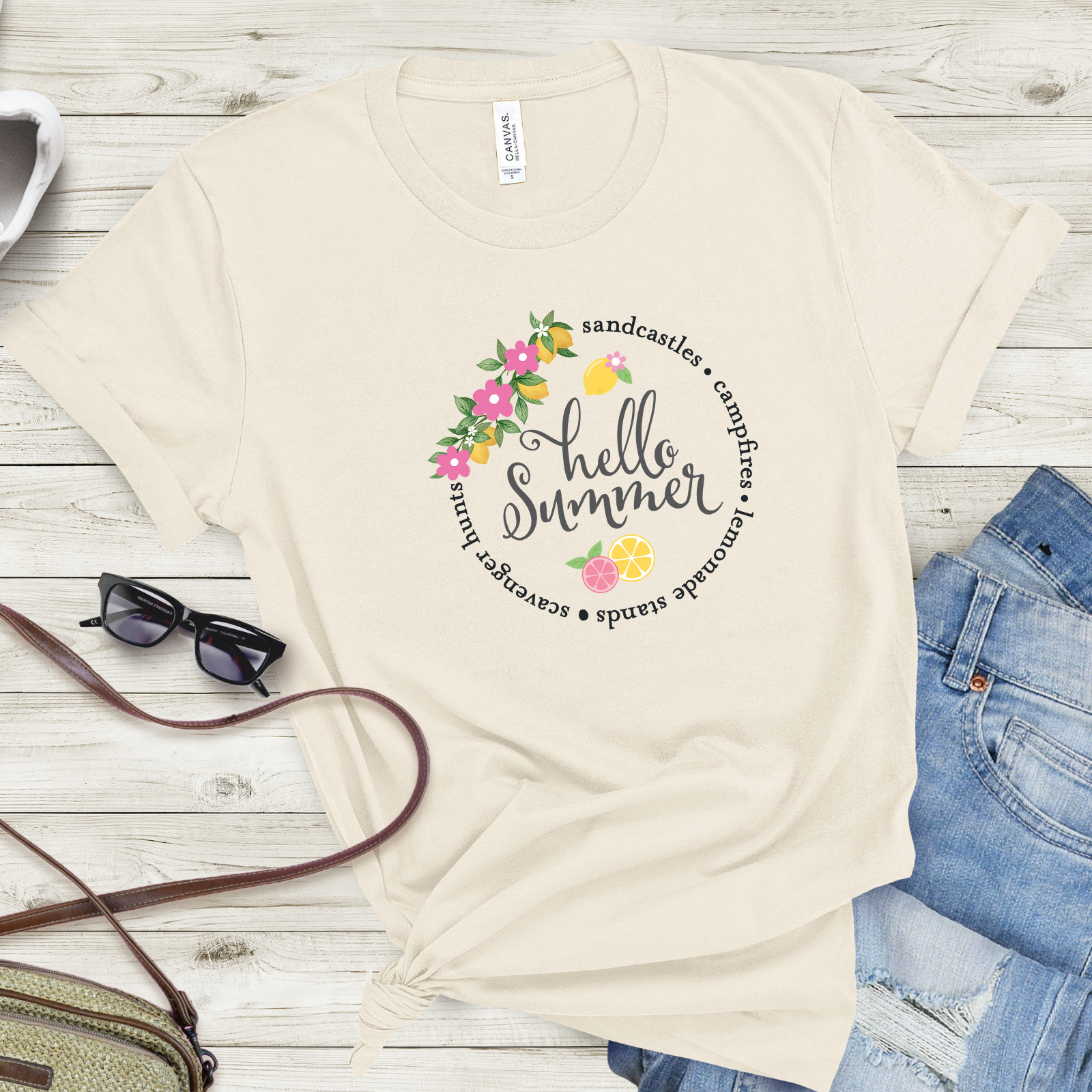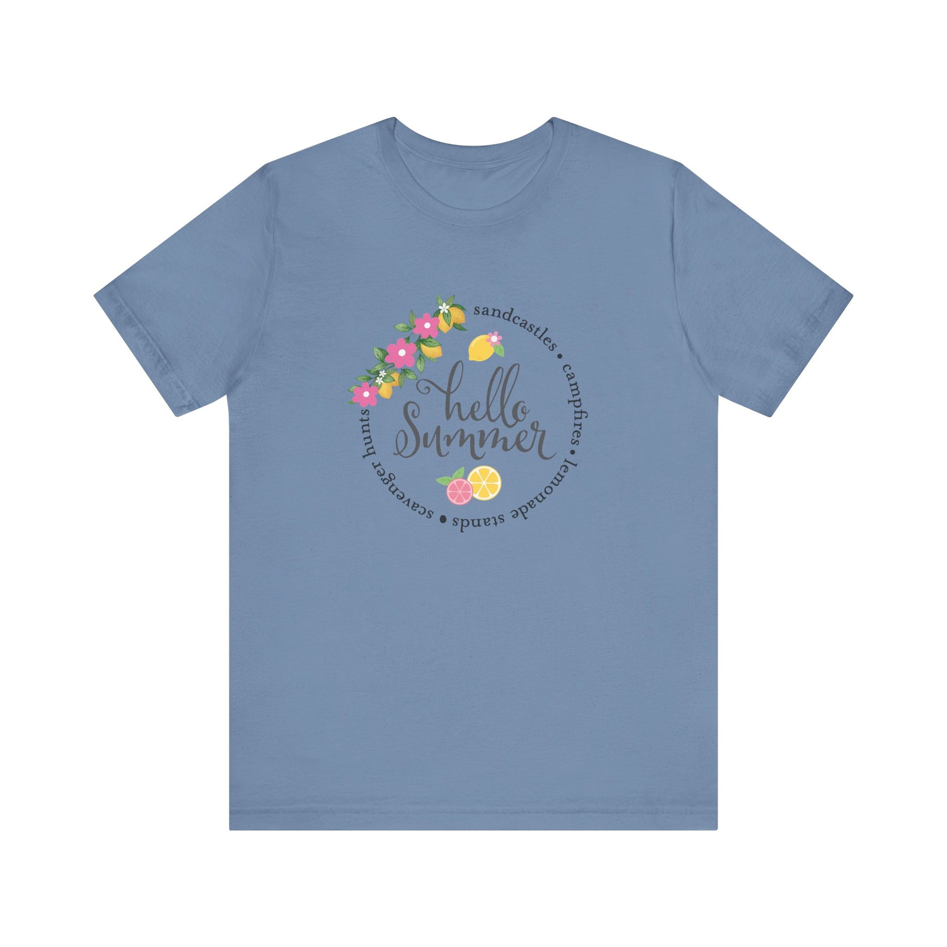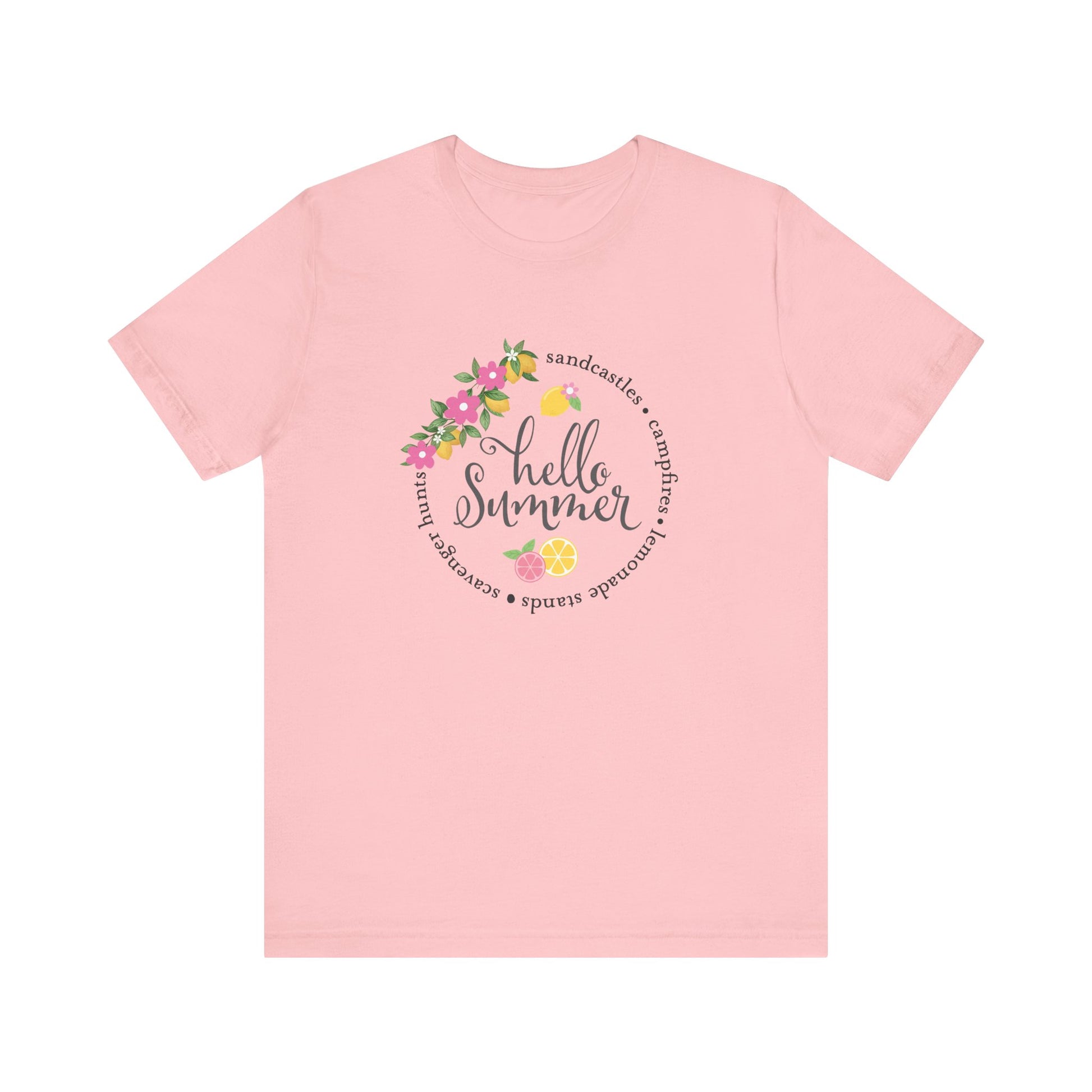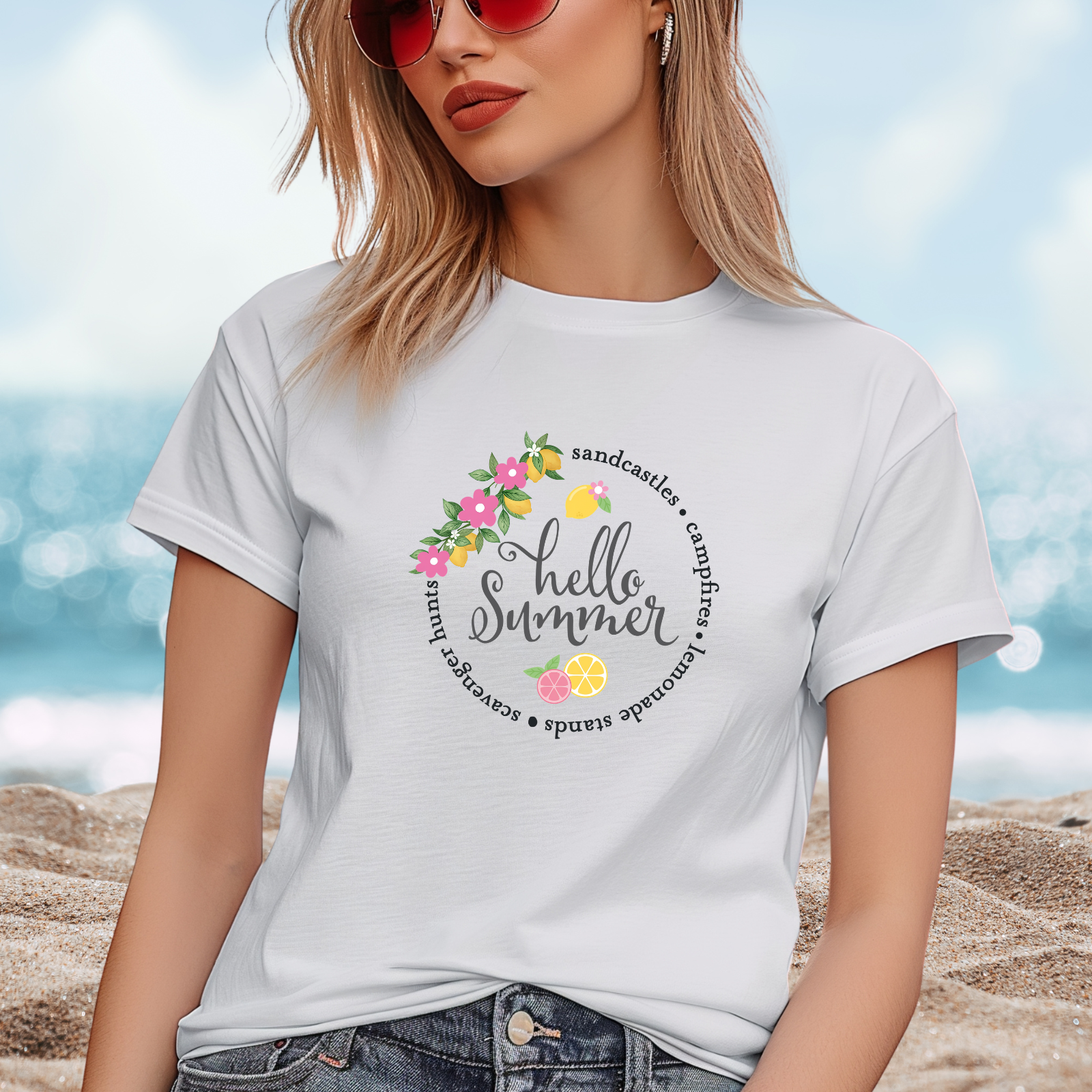 Bring a burst of sunshine to your wardrobe with the Hello Summer Sandcastles T-Shirt, the perfect staple for warm-weather adventures. This lightweight and breathable summer graphic tee is designed for comfort and style, making it ideal for beach days, backyard gatherings, or casual outings. Its playful vibe captures the joy of summer living while keeping your look effortlessly cool. Pair it with shorts, denim, or sandals and enjoy a versatile tee that keeps summer energy alive.