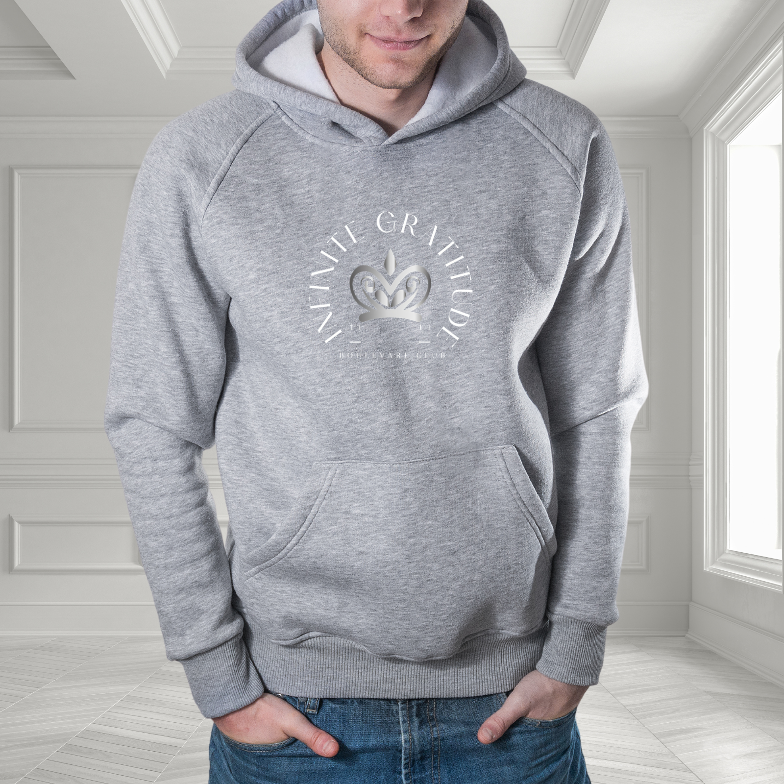 Elevate your wardrobe with the Infinite Gratitude Pullover Hoodie, designed to inspire and embrace a mindset of appreciation. This hoodie features a stylish graphic, symbolizing the royalty of thankfulness. Made from soft, high-quality fabric, it offers exceptional warmth and comfort for those chilly days. Perfect for lounging or casual outings, this hoodie makes a great gift or personal staple. Embrace cozy luxury and spread positive vibes wherever you go with this versatile and empowering pullover hoodie.