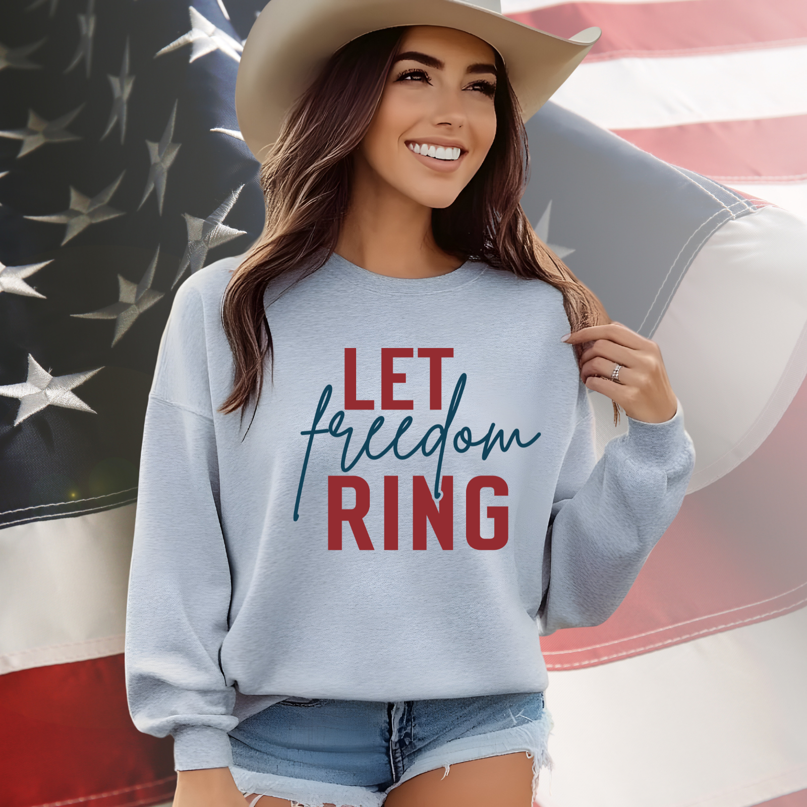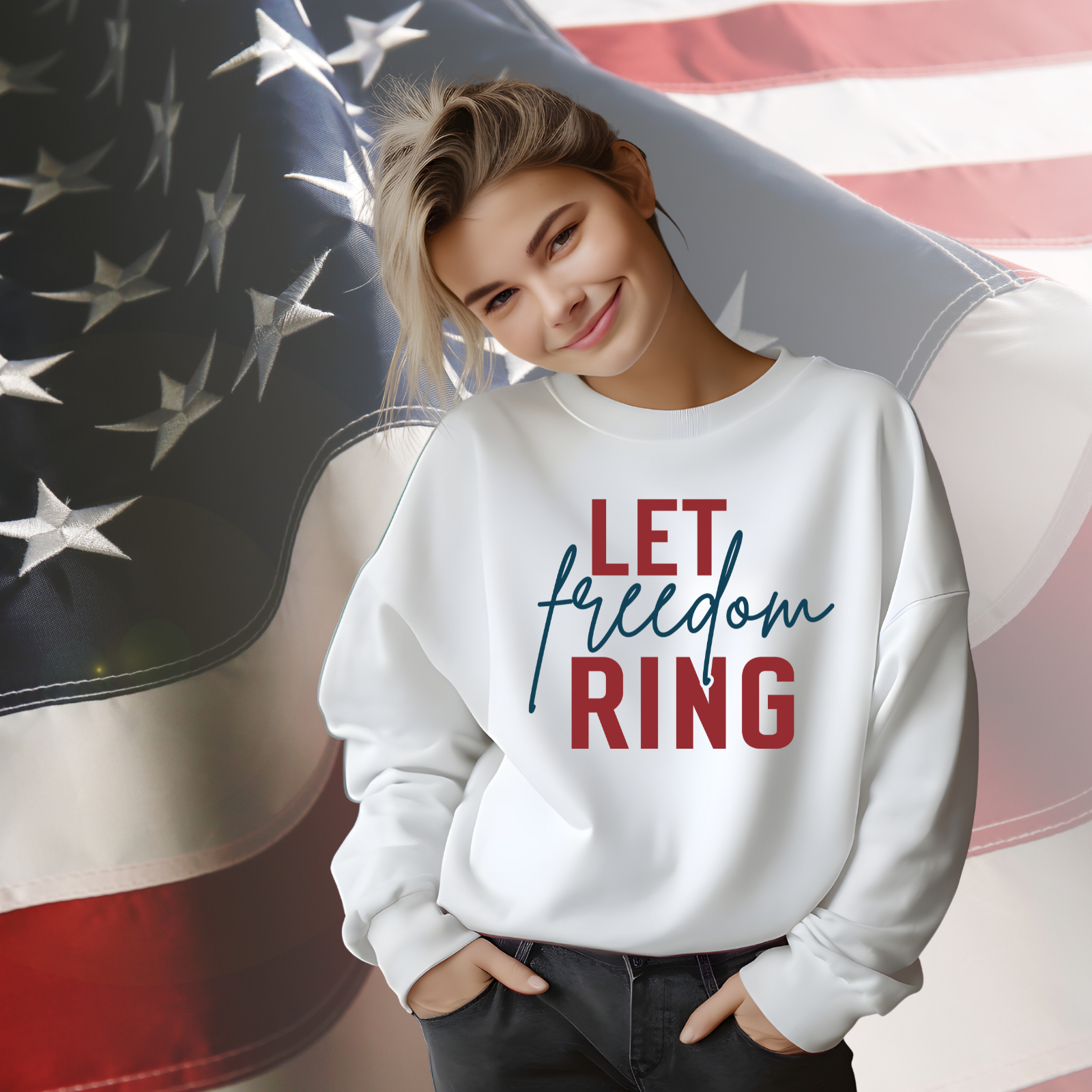 Celebrate the season in comfort and style with the Let Freedom Ring Crewneck Sweatshirt. This cozy favorite pairs patriotic pride with uplifting energy, making it perfect for celebrations, summer nights, and beyond. Whether you're honoring Independence Day or simply love inspiring, USA-themed apparel, this sweatshirt wraps you in warmth while sharing a powerful message. Add a touch of encouragement and American spirit to your everyday wardrobe with this soft, meaningful, and versatile staple.