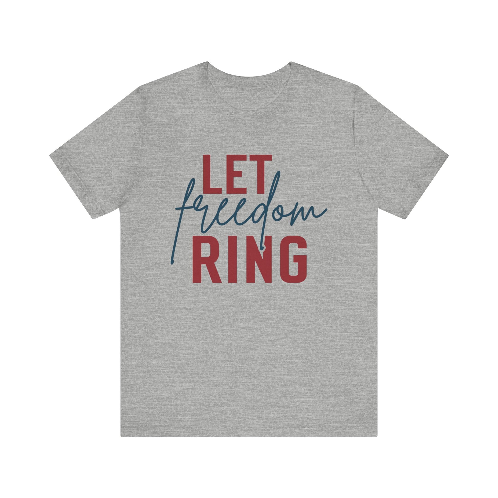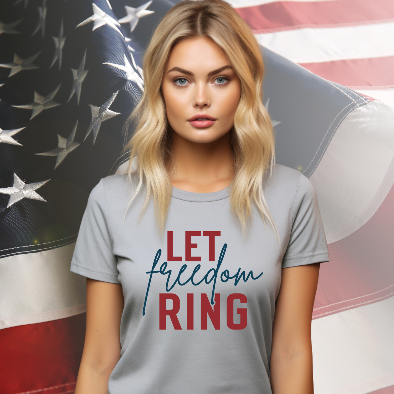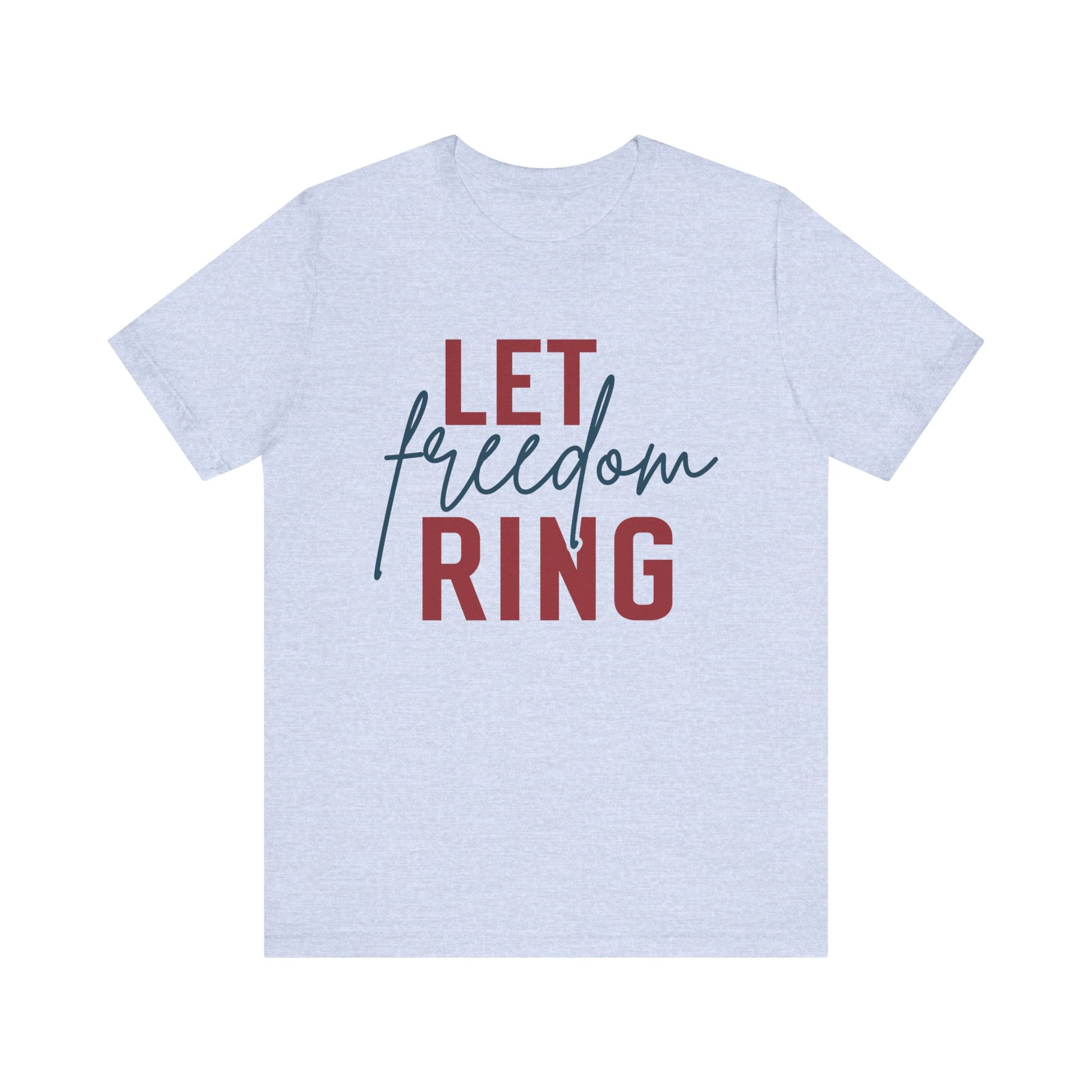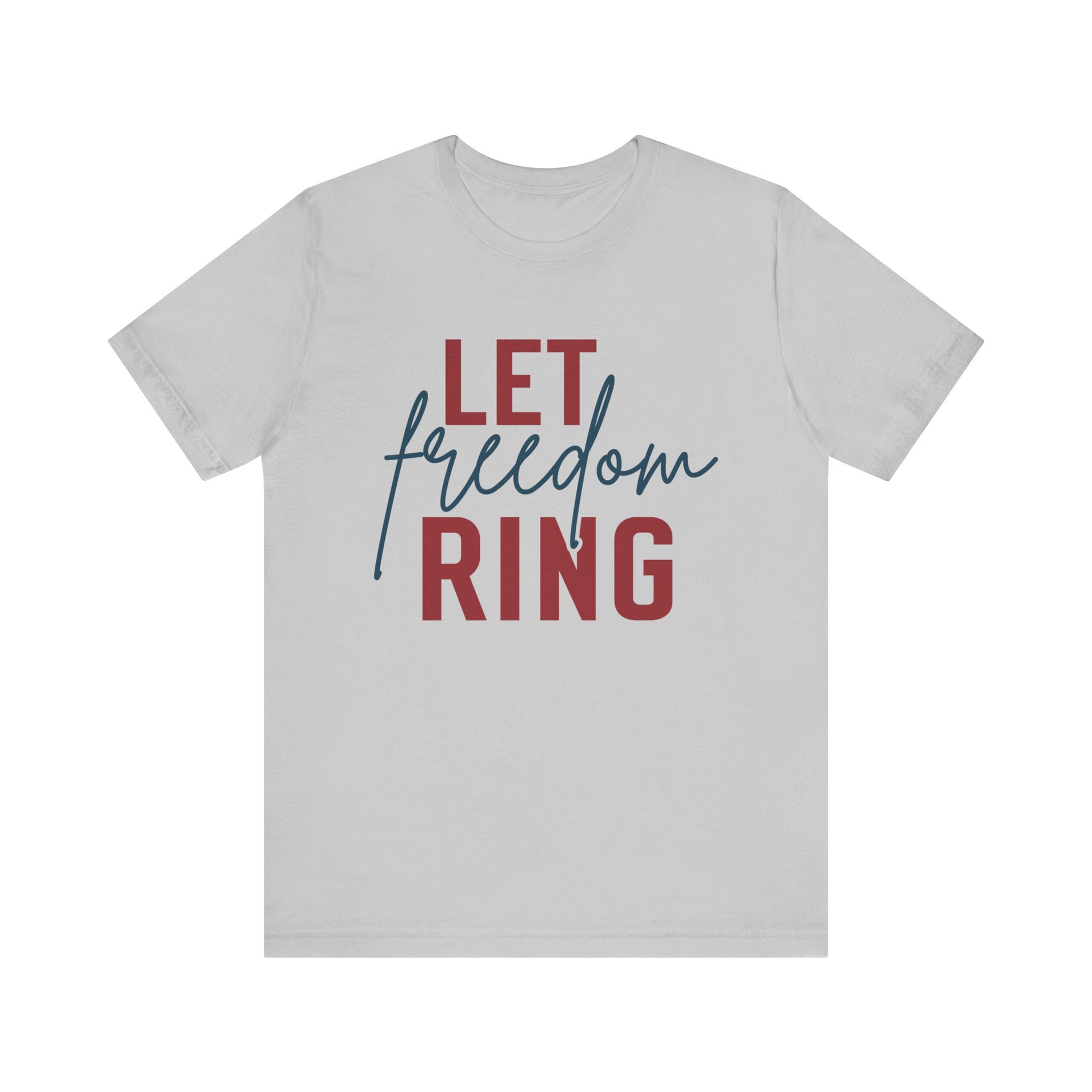 Let Freedom Ring in effortless style with this patriotic T-Shirt that celebrates freedom and positivity. Whether you're headed to a summer picnic, holiday celebration, or simply want to share an uplifting message, this tee makes it easy to express your values. With a soft, comfortable fit and a spirit of inspiration, it's perfect for pairing with jeans or layering for any season. Show your love for country and kindness with this meaningful and versatile wardrobe staple.