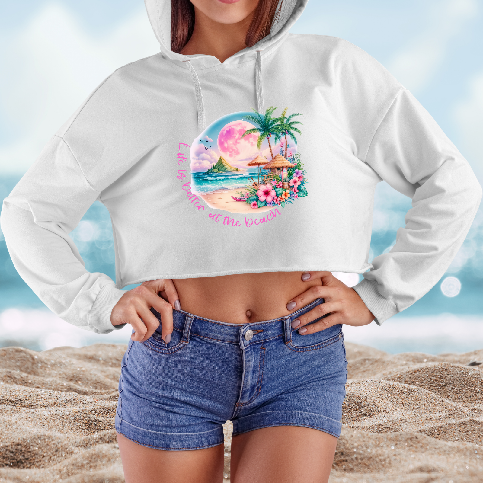 Bring laid-back coastal style to your wardrobe with the Life Is Better at The Beach Crop Hoodie, a must-have for summer lovers and ocean dreamers. Designed with a relaxed fit and soft comfort, this trendy cropped sweatshirt keeps your look effortlessly cool from sunrise strolls to evening bonfires. Perfect for layering over swimsuits or pairing with denim, it captures the carefree vibe of beachwear fashion while reminding you that seaside living is always the best kind of living.