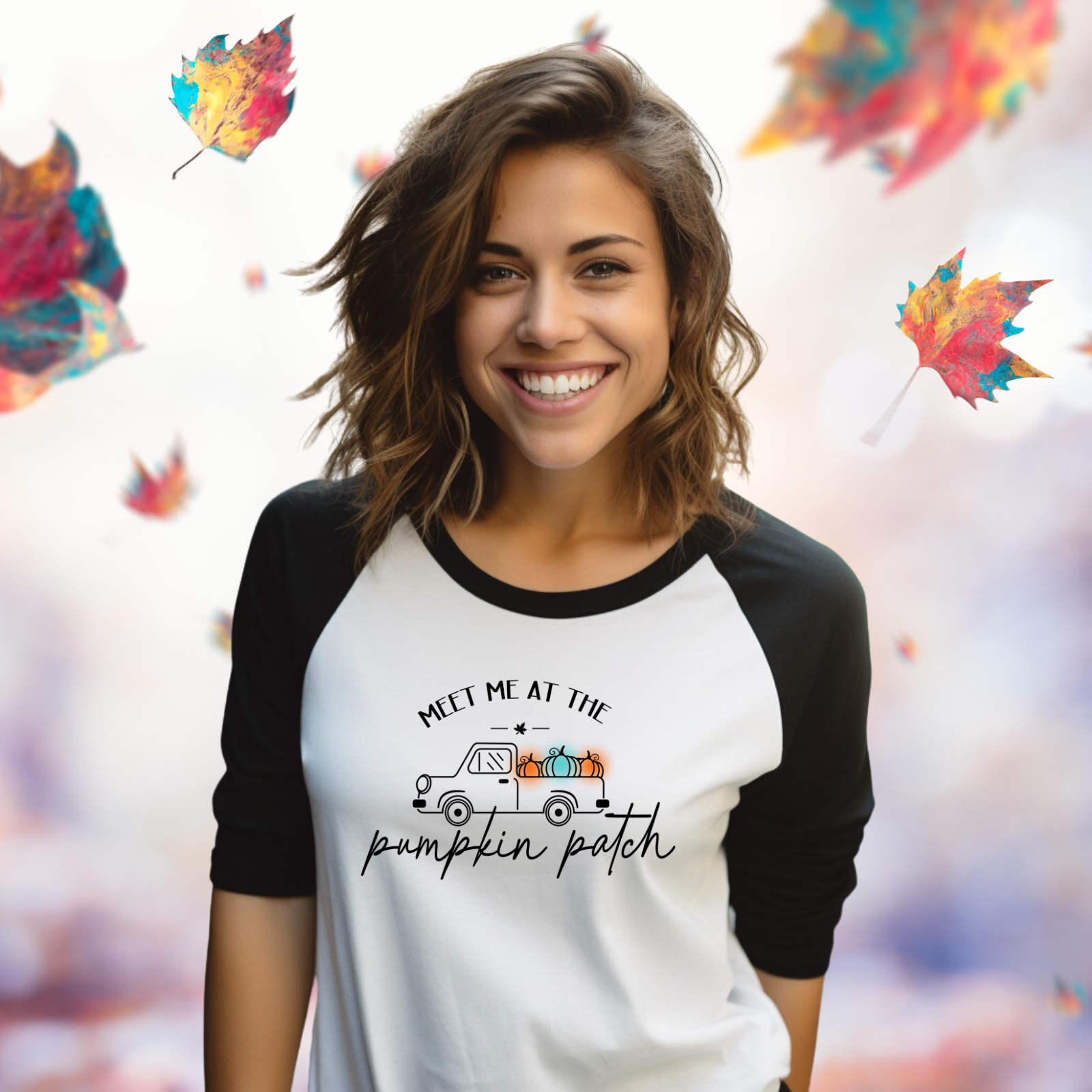 Celebrate the beauty of autumn in comfort and style with the Meet Me at The Pumpkin Patch Baseball Tee. Designed for cozy fall days, this soft and breathable tee is perfect for pumpkin patch adventures, hayrides, or weekend outings. Its classic baseball style adds a timeless, casual vibe to any outfit. Whether paired with jeans or leggings, this fall graphic tee brings effortless charm to your seasonal wardrobe and makes every autumn moment feel warm, festive, and full of fall spirit.