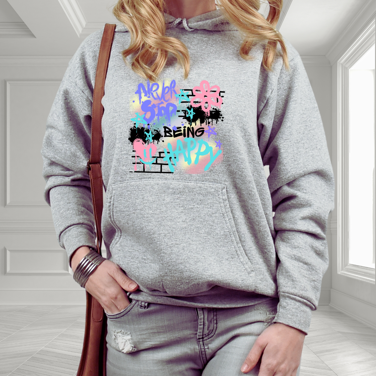 Elevate your casual style with the Never Stop Being Happy Pullover Hoodie, a perfect blend of comfort and streetwear appeal. Crafted for both warmth and versatility, this hoodie is ideal for keeping cozy while showcasing a positive mindset. Its relaxed fit and soft fabric make it your go-to layer for chill days, outdoor adventures, or just lounging around. Add this hoodie to your collection for a trendy piece that keeps you feeling good and looking great!