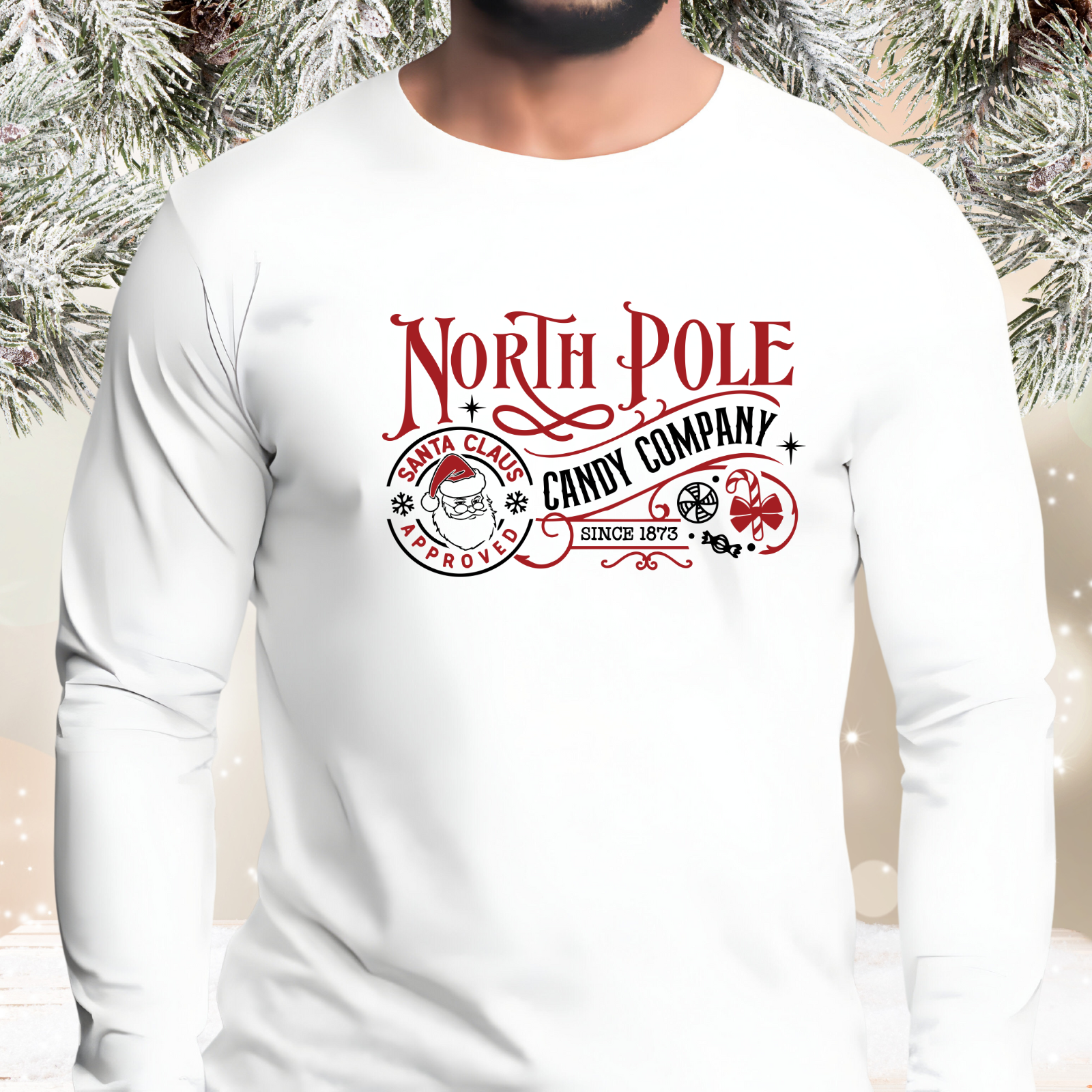 Embrace holiday cheer with the North Pole Candy Company Long Sleeve Tee, a cozy essential for the festive season. Crafted from premium, breathable fabric, this versatile long sleeve shirt is perfect for layering or wearing on its own during chilly winter days. Whether you're baking treats, attending a holiday gathering, or sipping cocoa by the fire, this tee adds a touch of seasonal charm to your wardrobe. Stay stylish, comfortable, and ready to celebrate all season long.