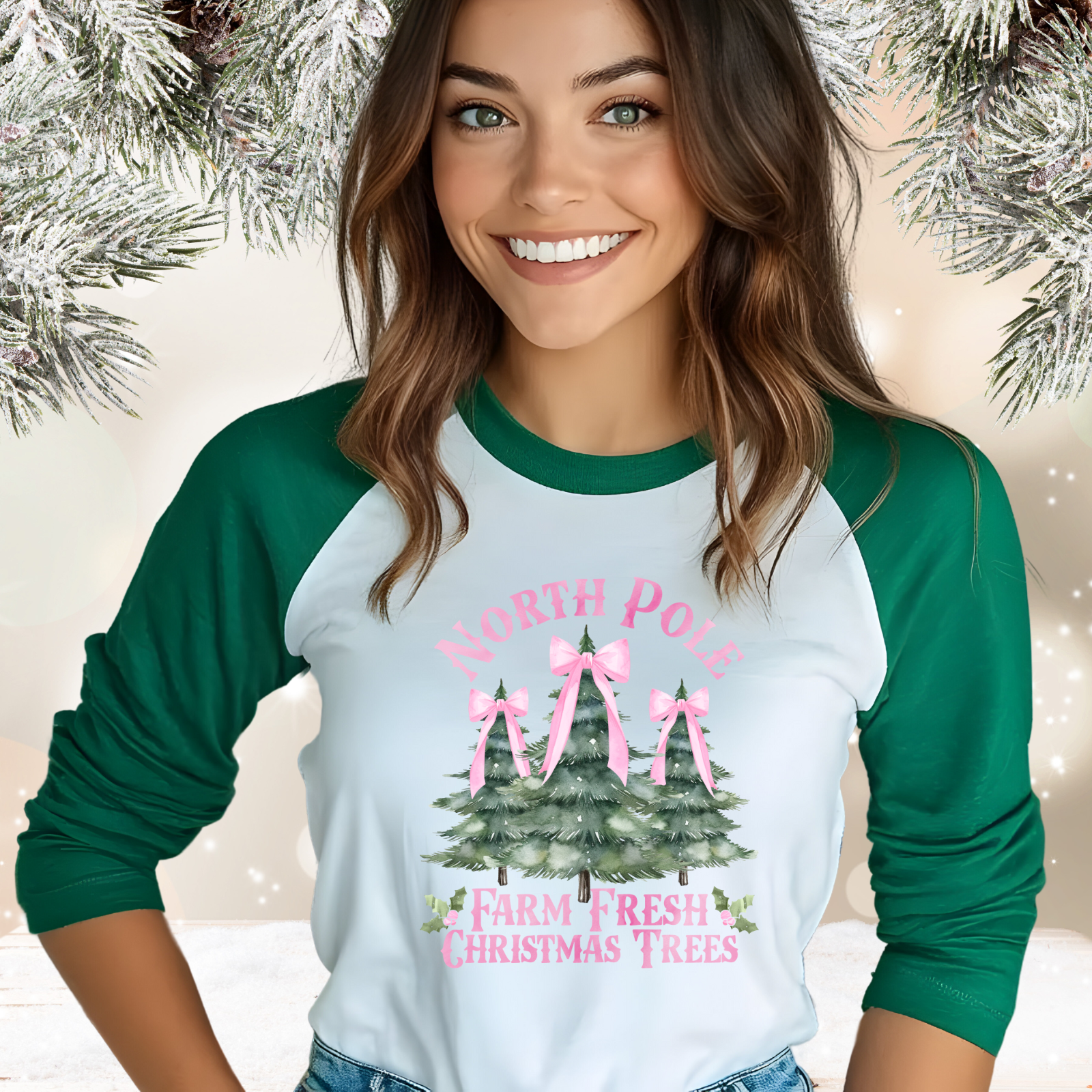 Embrace the charm of the season with the North Pole Christmas Trees Baseball Tee, crafted for cozy yet stylish holiday vibes. Featuring a relaxed fit and contrasting raglan sleeves, this tee is ideal for festive gatherings or casual days out. The coquette-inspired design exudes elegance, while the soft, lightweight fabric ensures all-day comfort. Perfect for pairing with jeans or leggings, it’s a must-have for anyone looking to celebrate the holidays in effortlessly chic fashion.