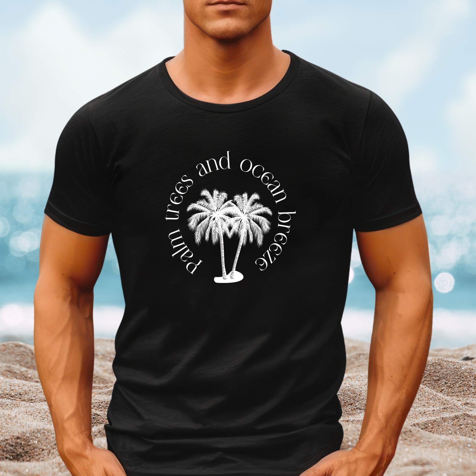 Bring the relaxing vibes of the coast to your wardrobe with the Palm Trees and Ocean Breeze T-Shirt, perfect for beach days, summer adventures, or casual outings. Made from soft, breathable fabric, this comfortable tee pairs effortlessly with shorts or jeans for an easy, stylish look. Its laid-back, coastal-inspired design makes it a summer essential, a must-have for anyone who loves to keep it cool and chic.