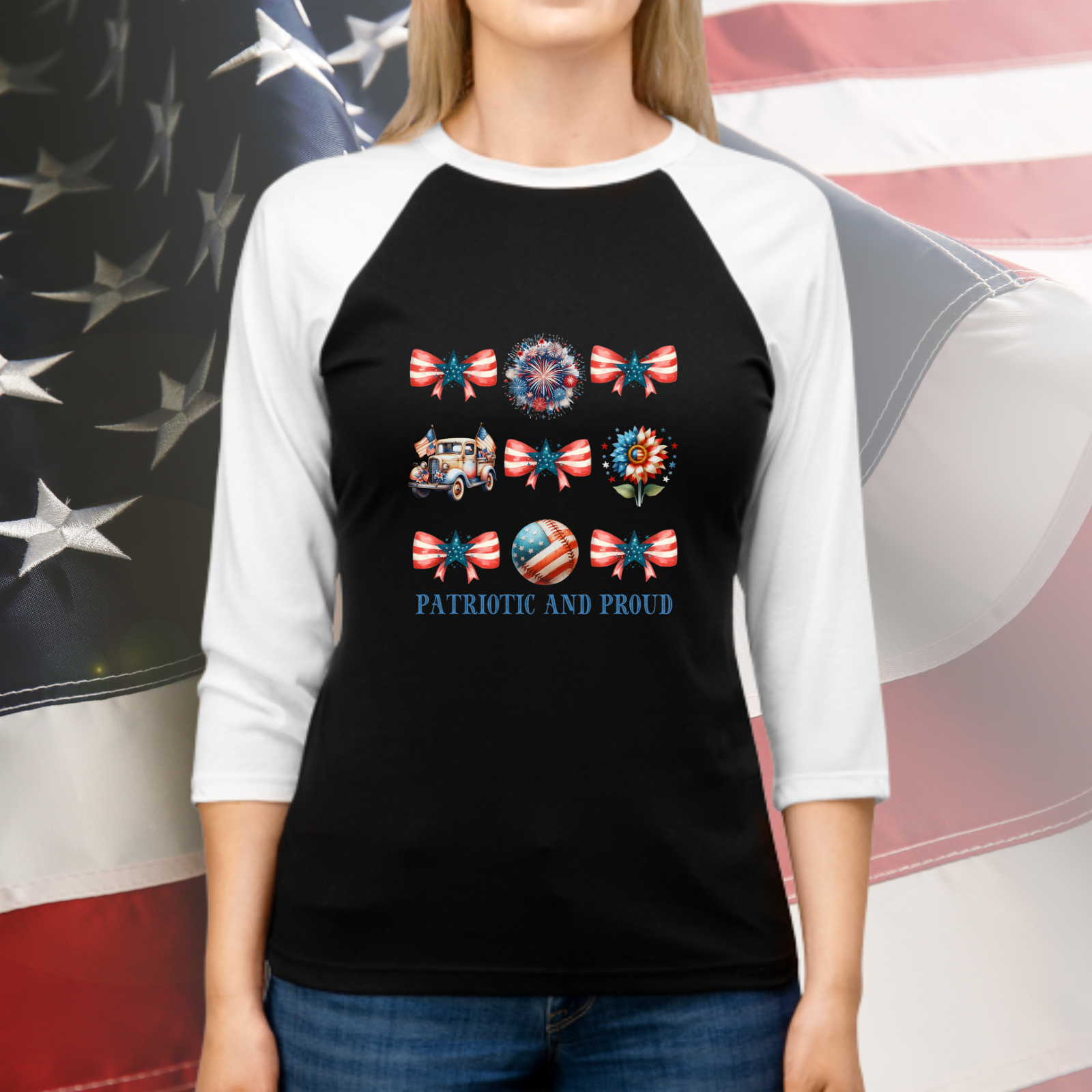 Celebrate freedom with feminine flair in this Patriotic and Proud Baseball Tee. Designed for those who adore vintage-inspired USA apparel, this top brings together comfort, charm, and all-American spirit. Whether you’re heading to a Fourth of July picnic, a summer concert, or simply showing off your patriotic pride, this tee makes the perfect statement. Its playful yet classic style adds a unique twist to your red, white, and blue wardrobe. Stay proud, stylish, and ready for every celebration.