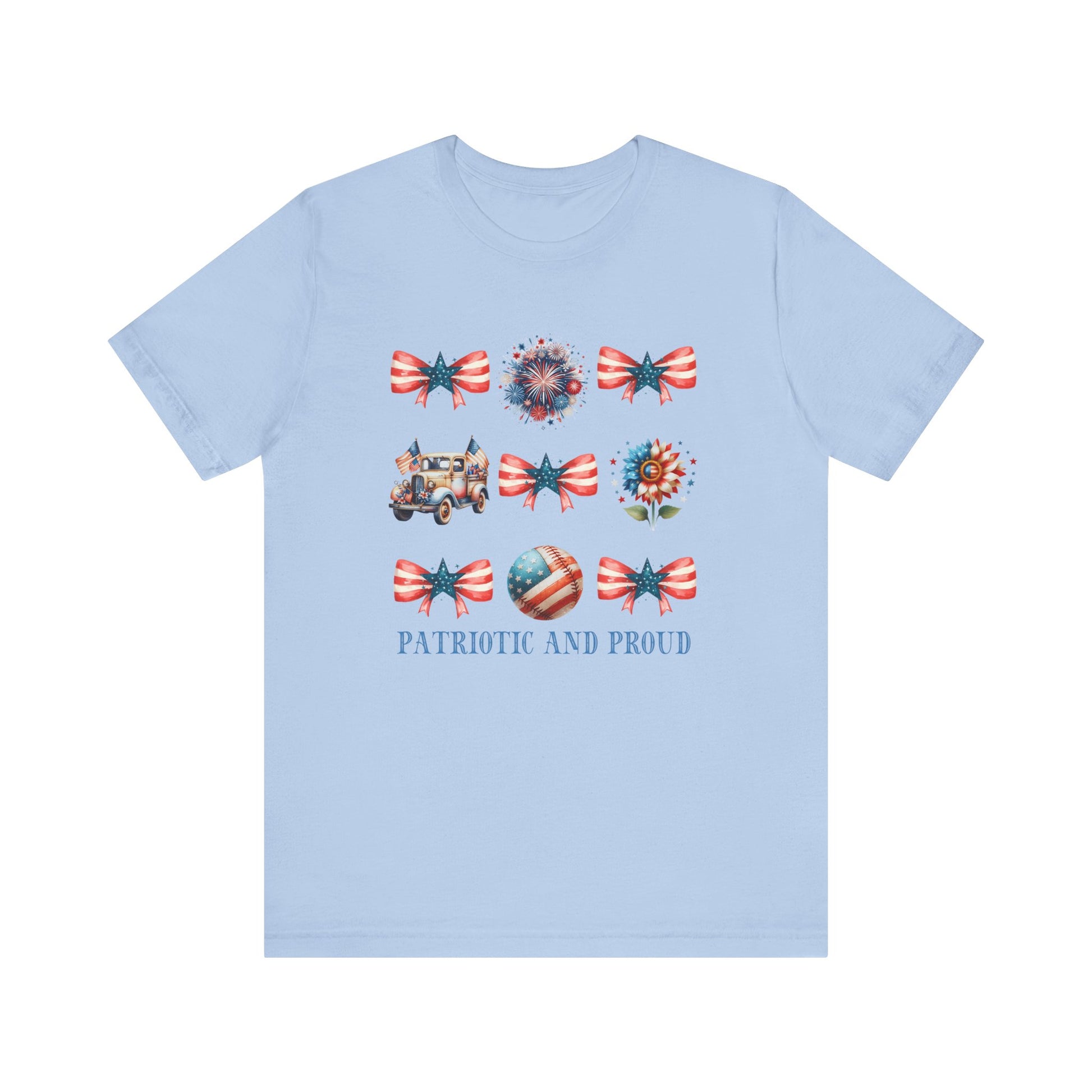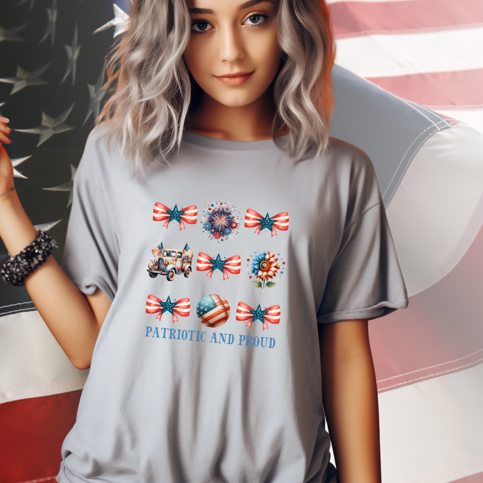 Show off your love for country and style with this Patriotic and Proud T-Shirt, the perfect blend of vintage charm and red, white, and blue flair. Whether you're celebrating Independence Day or simply honoring American pride, this tee makes a bold yet feminine statement. Soft, flattering, and full of spirited personality, it’s ideal for holiday events, barbecues, or everyday wear. Elevate your patriotic wardrobe with a unique piece that captures both fashion and freedom in every stitch.