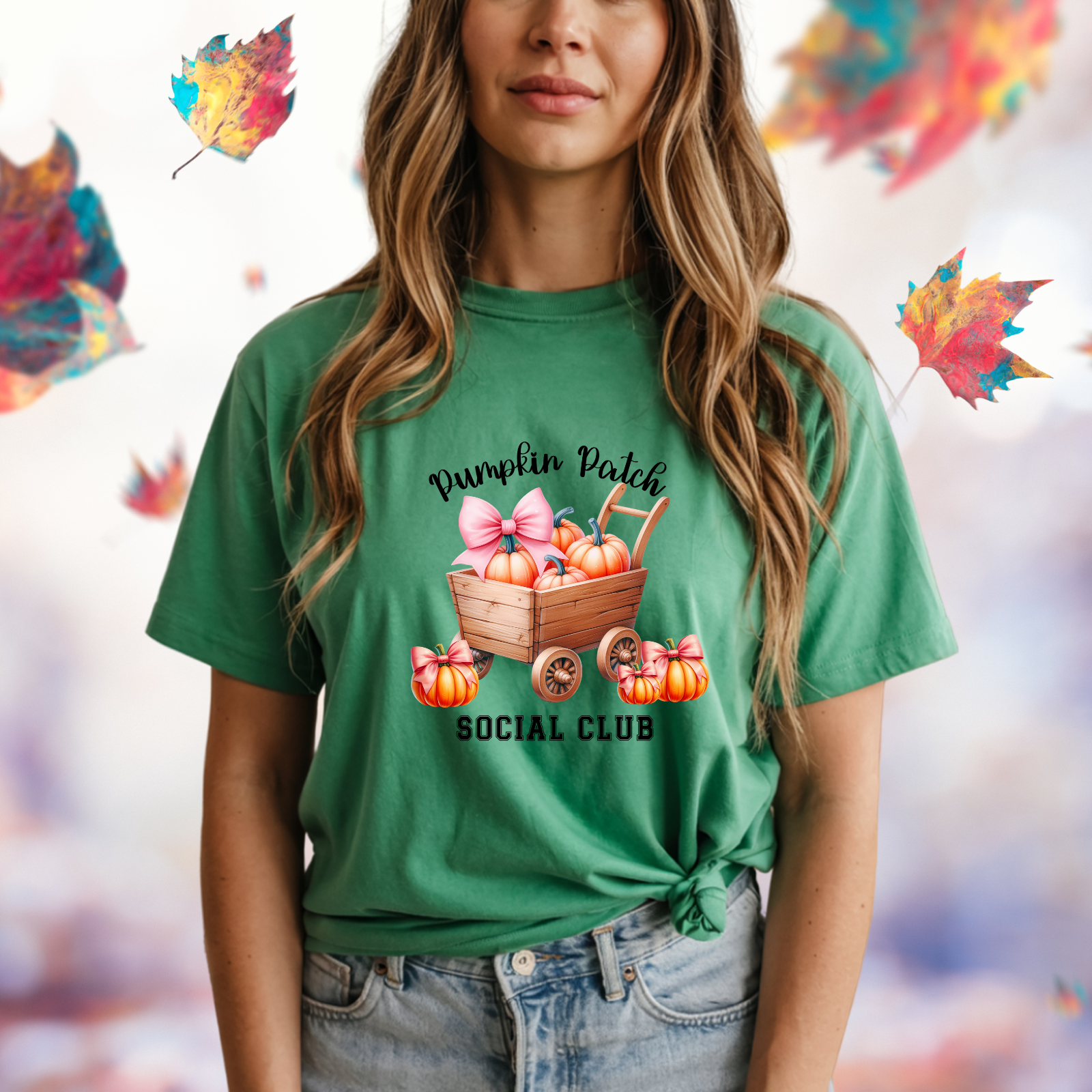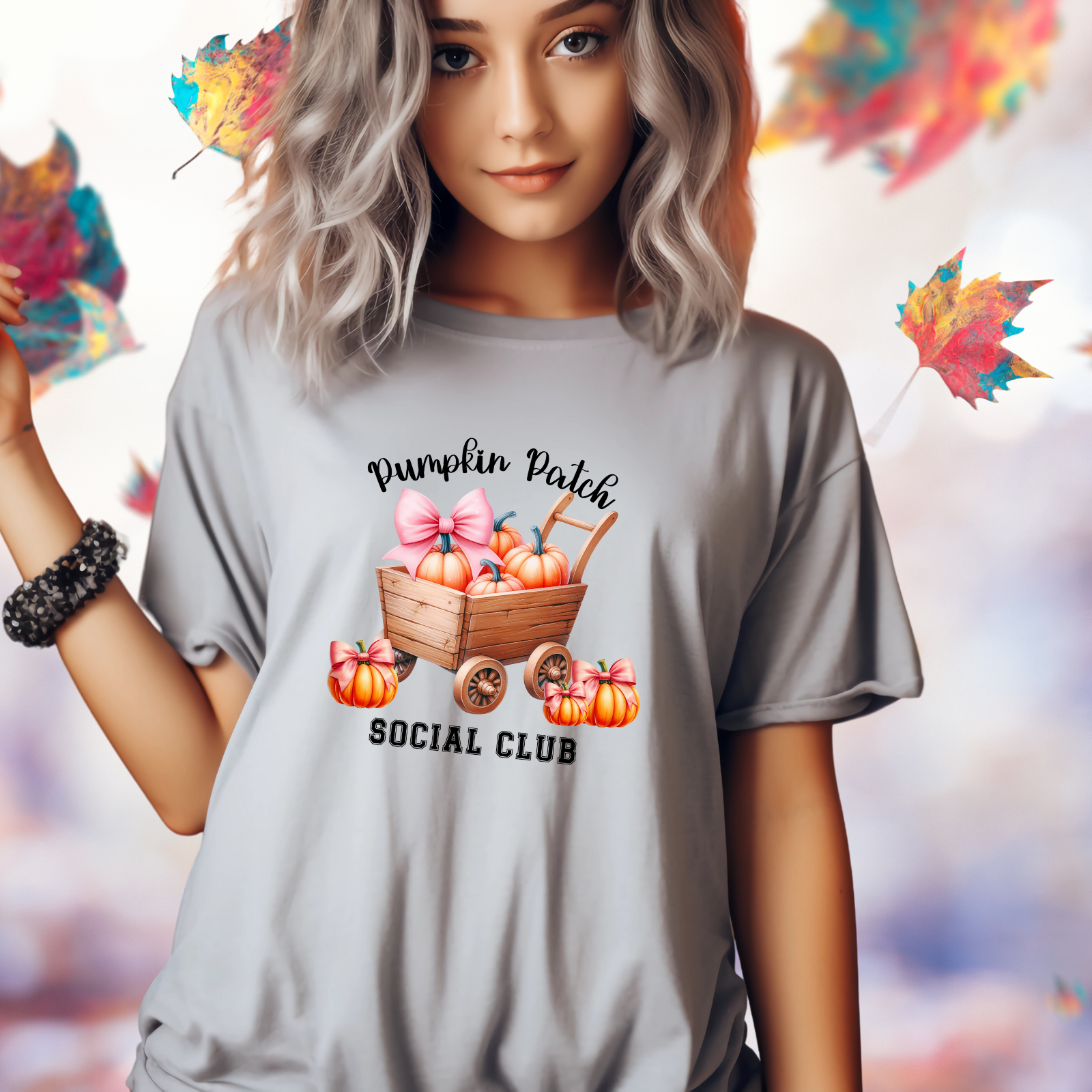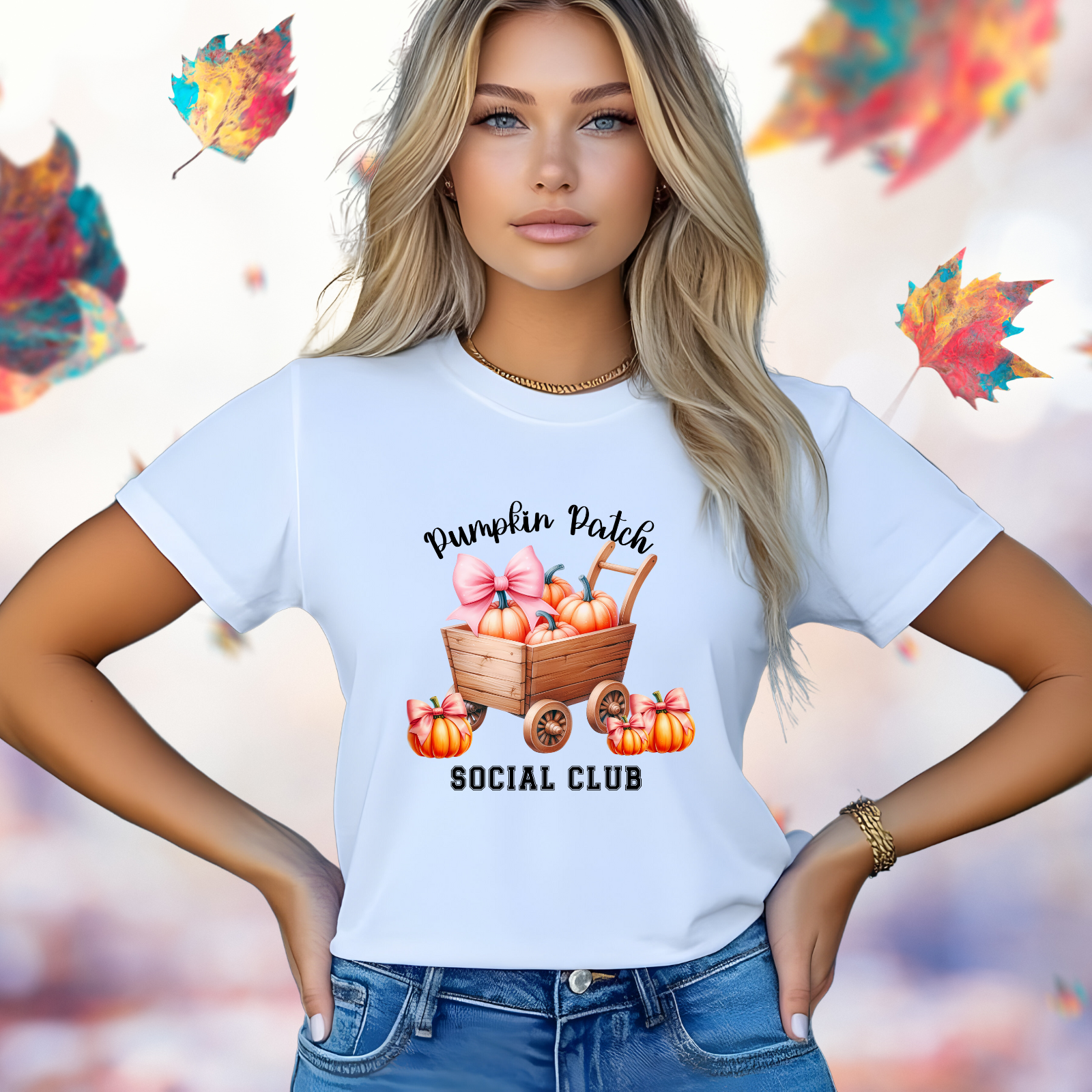 Join the charm of fall with the Pumpkin Patch Social Club T-Shirt, the perfect way to elevate your autumn wardrobe with cozy seasonal style. This fall graphic tee blends comfort with a playful, on-trend vibe, making it ideal for pumpkin patch days, family outings, or crisp weekend adventures. Its soft feel and flattering fit make it a go-to choice for anyone who loves pumpkin season. Add this autumn T-Shirt to your collection and enjoy effortless style all season long.
