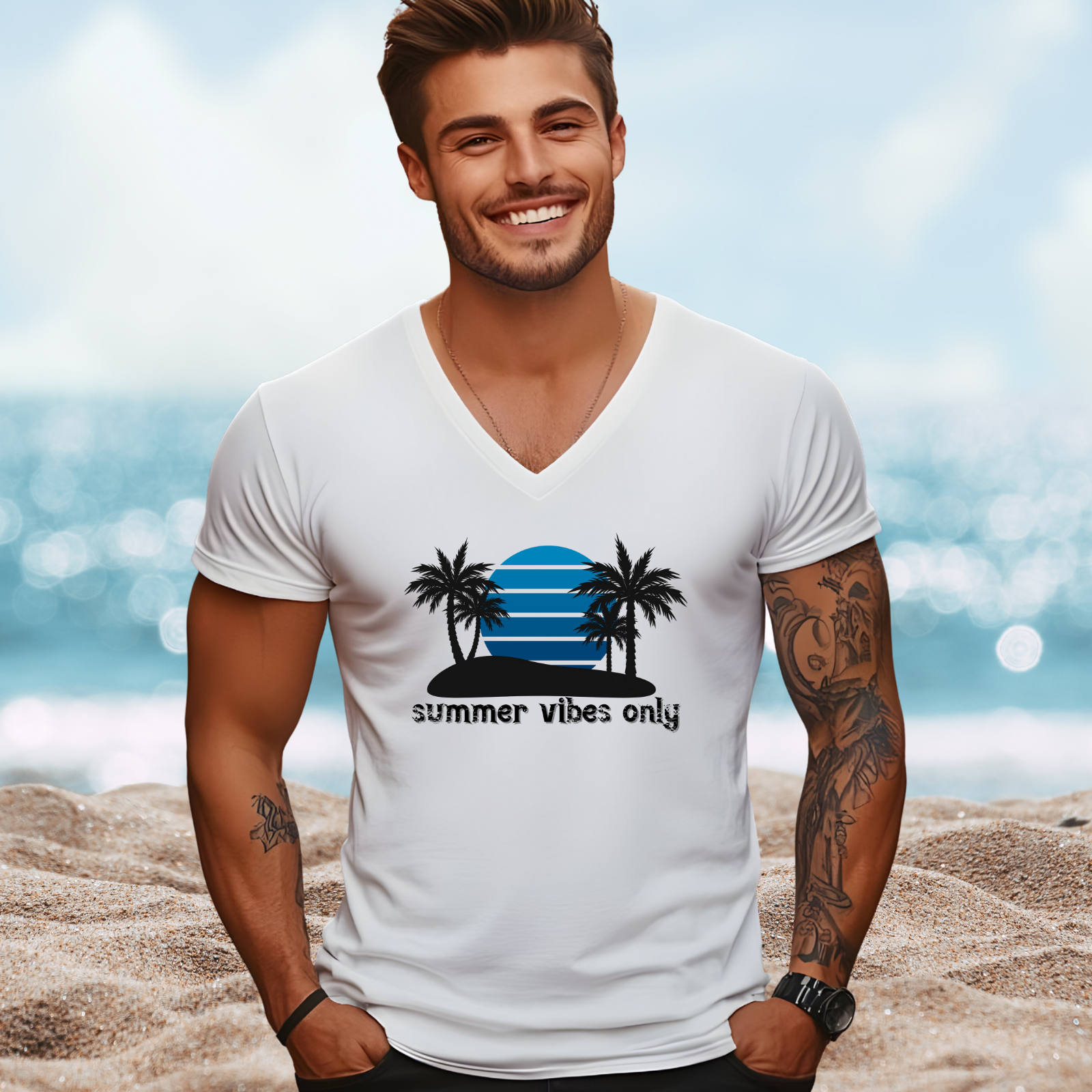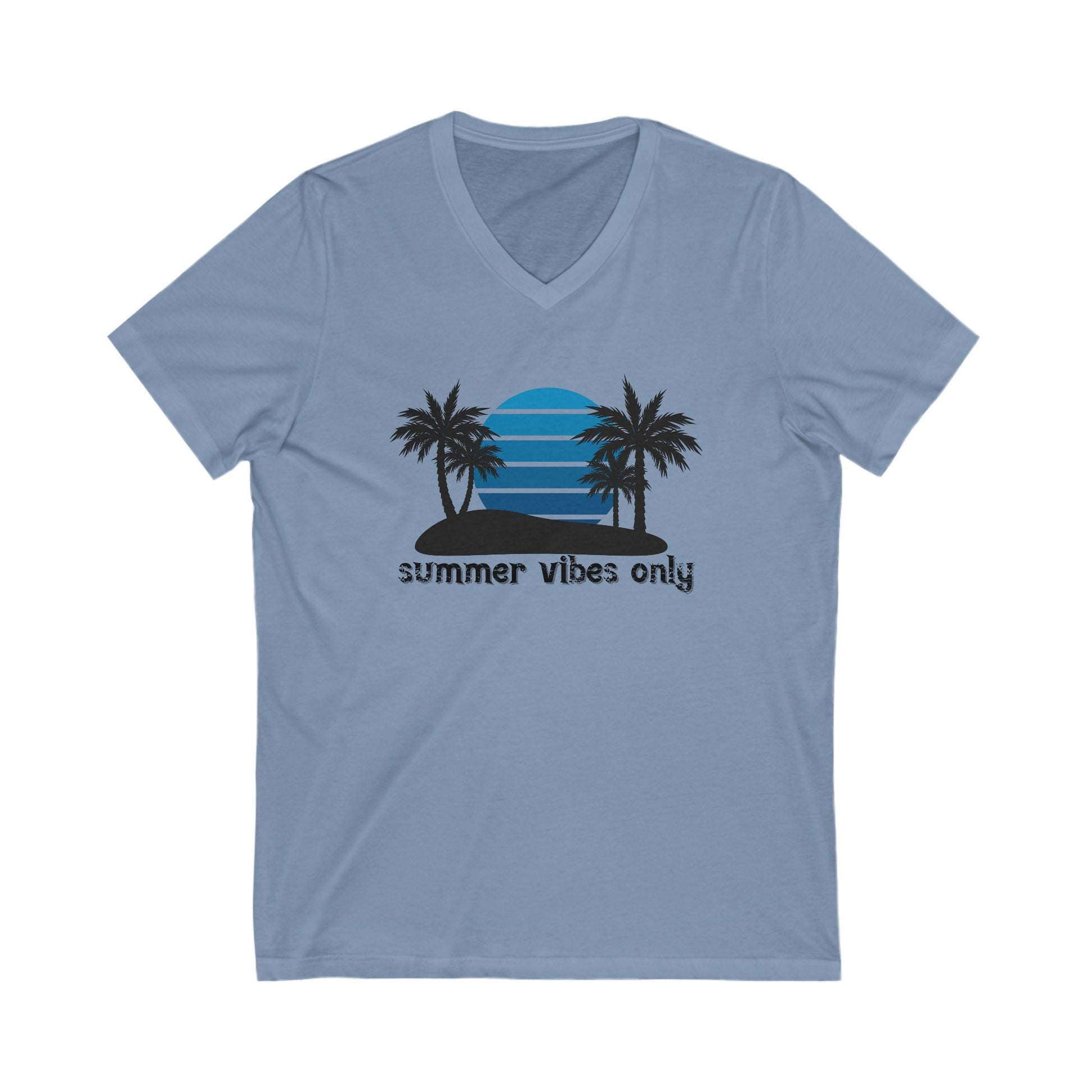Step into effortless style with the Summer Vibes Only V-Neck Tee, designed for warm days, coastal escapes, and carefree adventures. This lightweight and breathable tee is perfect for beach vacations, summer parties, or simply soaking up sunny afternoons in comfort. The relaxed vibe and touch of retro charm make it a go-to piece for your seasonal wardrobe. A must-have for anyone who loves palm trees, sunsets, and easygoing fashion, this tee keeps summer energy alive wherever you go.