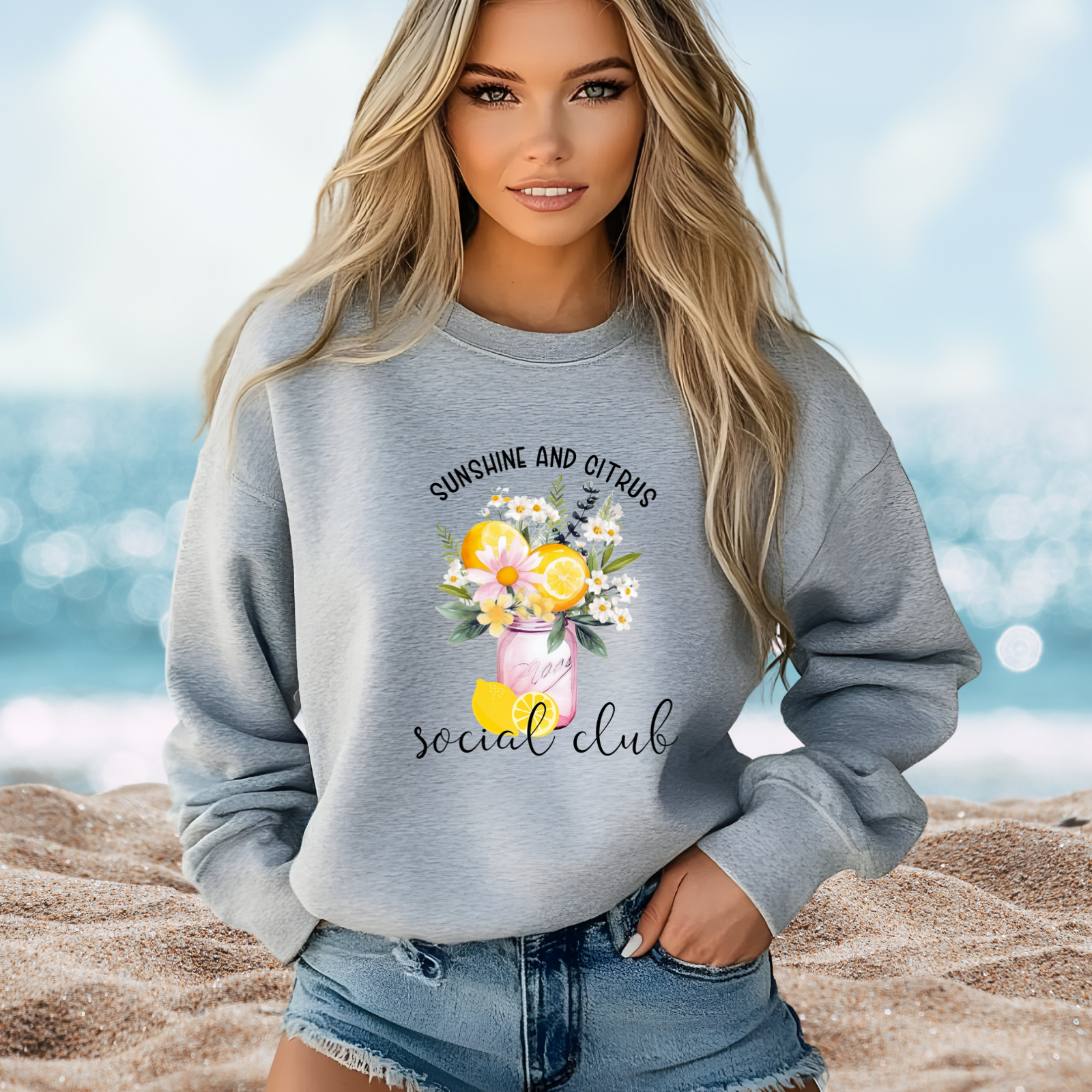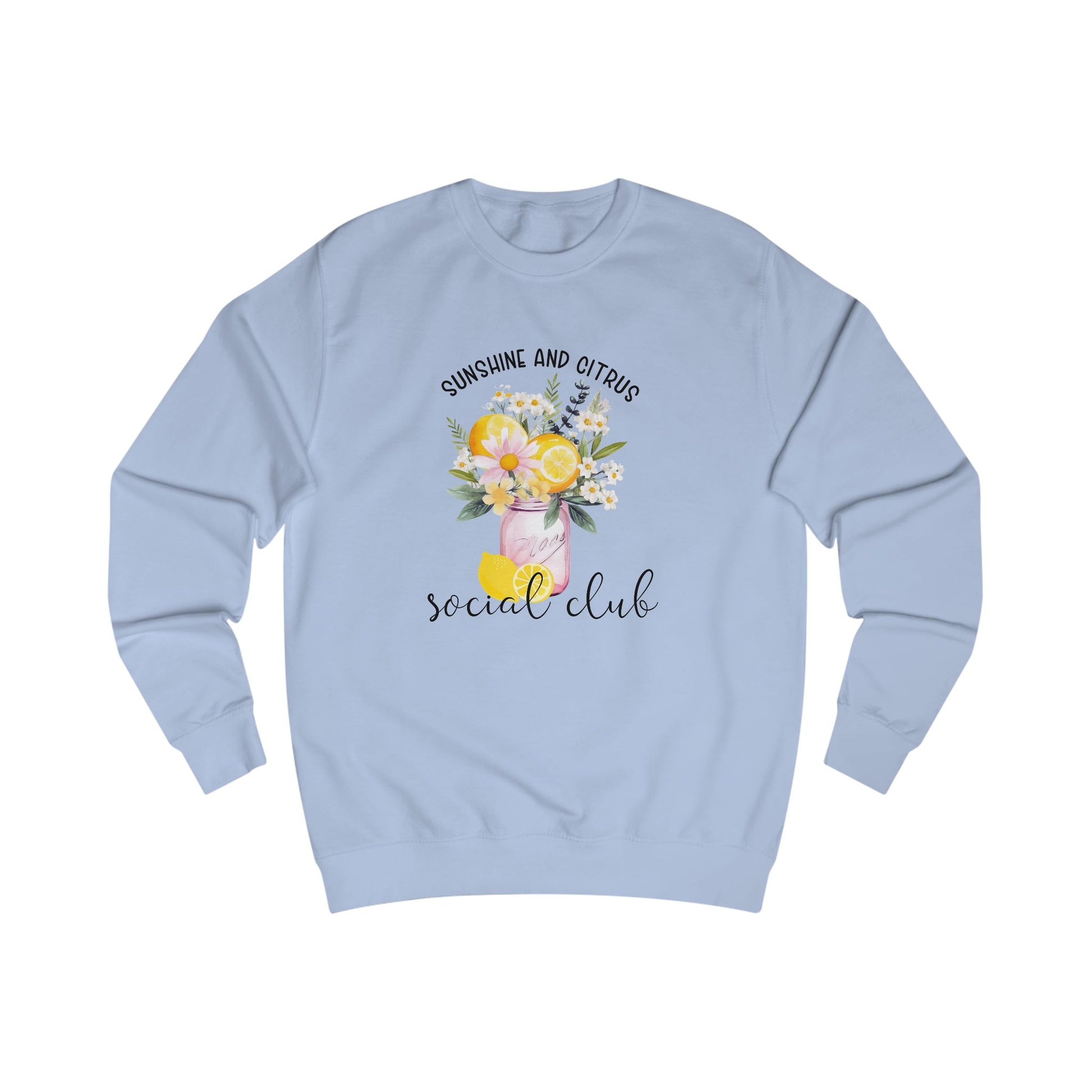 Add a burst of fresh energy to your wardrobe with the Sunshine and Citrus Social Club Crewneck Sweatshirt. Perfect for cozy days and breezy summer nights, this soft and versatile sweatshirt blends comfort with effortless style. Whether you are lounging at home, heading to a casual outing, or layering up for cooler evenings, it keeps you feeling relaxed and chic. A must-have for anyone who loves playful fashion with a touch of sunshine-inspired charm.