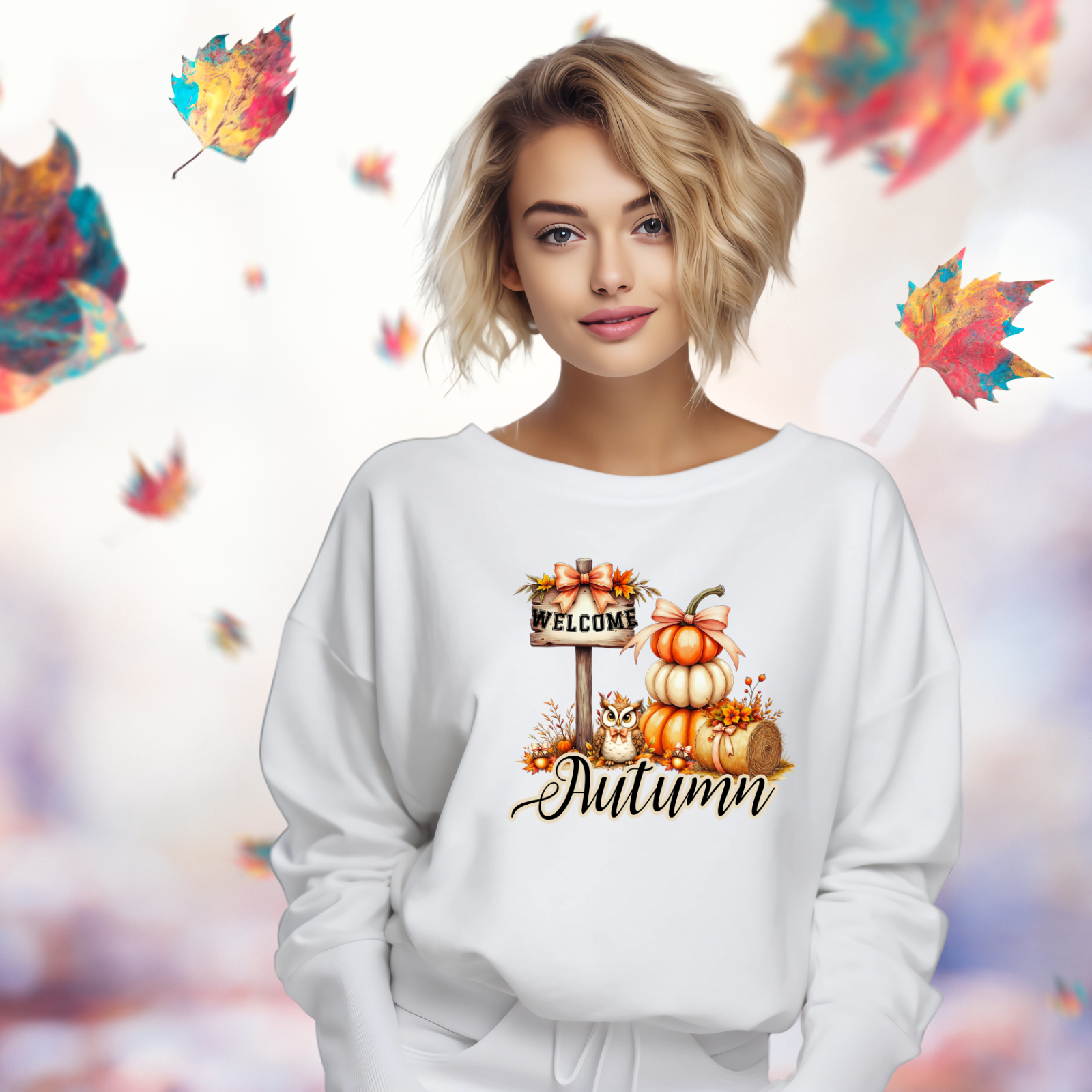 Welcome the cozy charm of the season with our Welcome Autumn Crewneck Sweatshirt, the perfect blend of comfort and farmhouse fall style. This soft, warm sweatshirt captures the essence of crisp mornings, pumpkin patches, and cozy gatherings. Ideal for layering on chilly days, it adds a rustic touch to any autumn outfit. Celebrate your love for fall fashion and all things harvest with this timeless, cozy piece made for every autumn lover’s wardrobe.