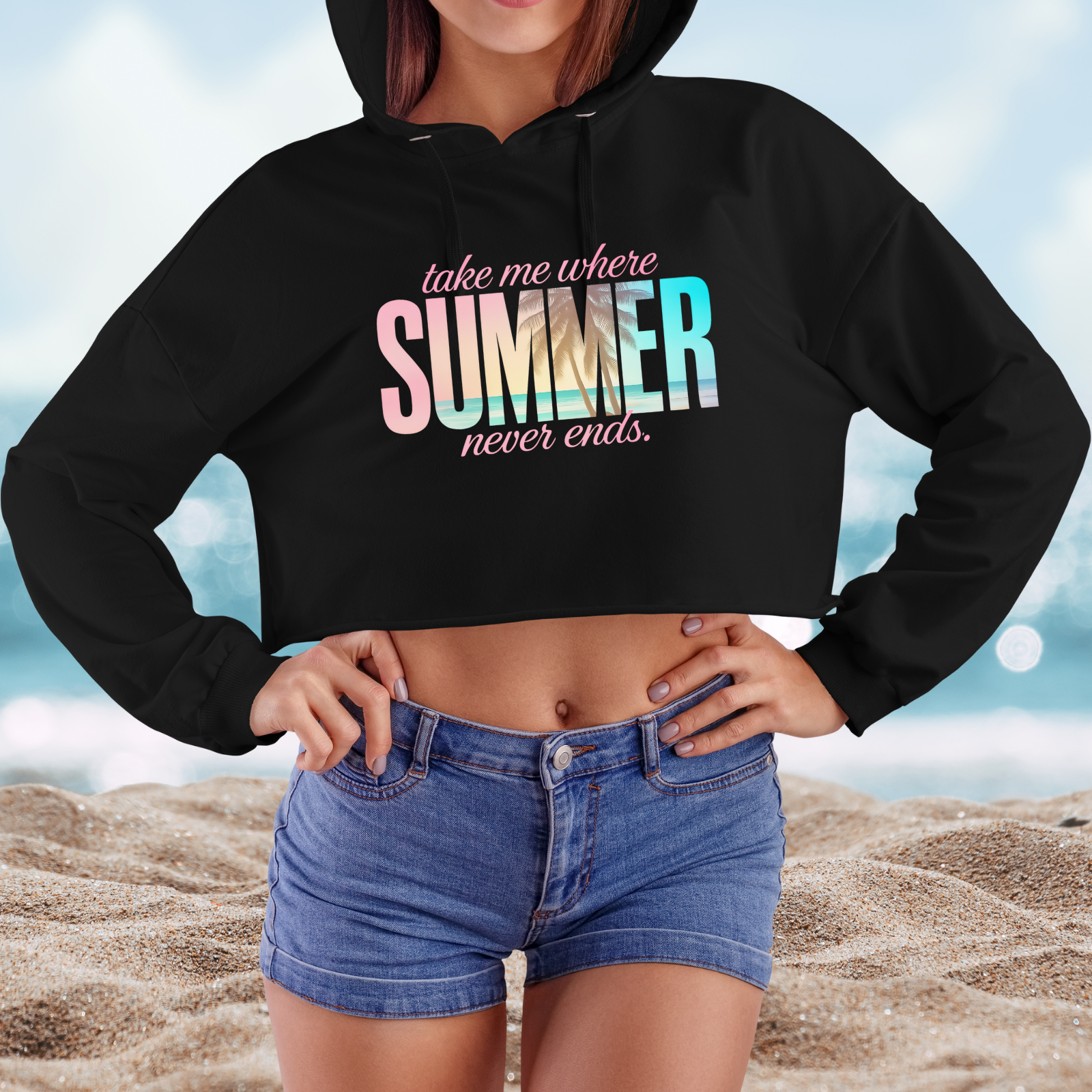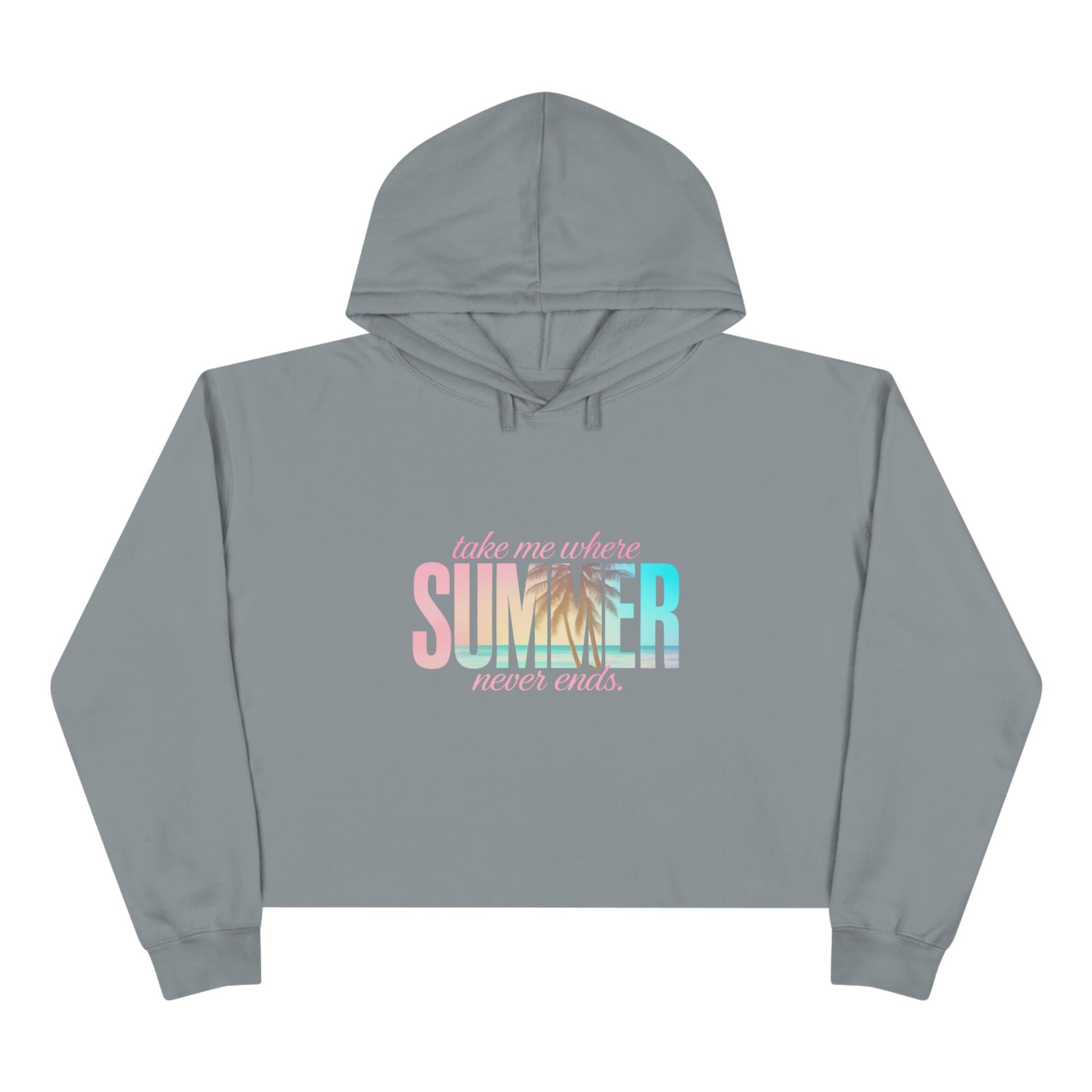 Step into endless sunshine with the Where Summer Never Ends Crop Hoodie, the ultimate statement piece for beach lovers and free spirits. Perfectly blending comfort and style, this cropped hoodie brings laid-back summer vibes to your everyday wardrobe. Whether you are strolling the boardwalk, enjoying a sunset, or lounging with friends, the flattering cut and soft feel make it a go-to favorite. Celebrate warm days and carefree nights with this must-have summer hoodie designed for year-round relaxation.